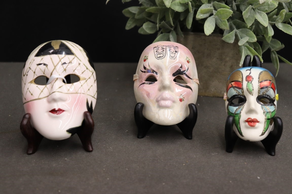Group Of Three Very Small Decorative Mardi Gras/Carnevale Face Masks (3-4")