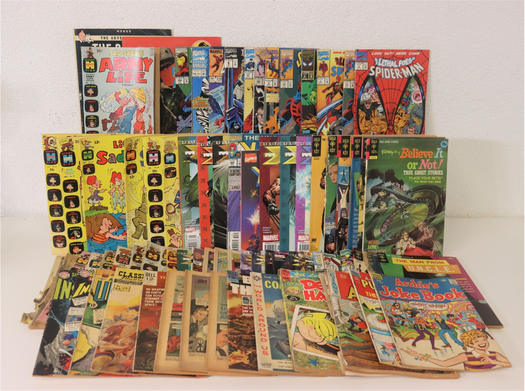 Group Stack Of Vintage Comic Books: Spiderman Vs. Sad Sack, Robert Downey Jr. Battles Archie & Gang