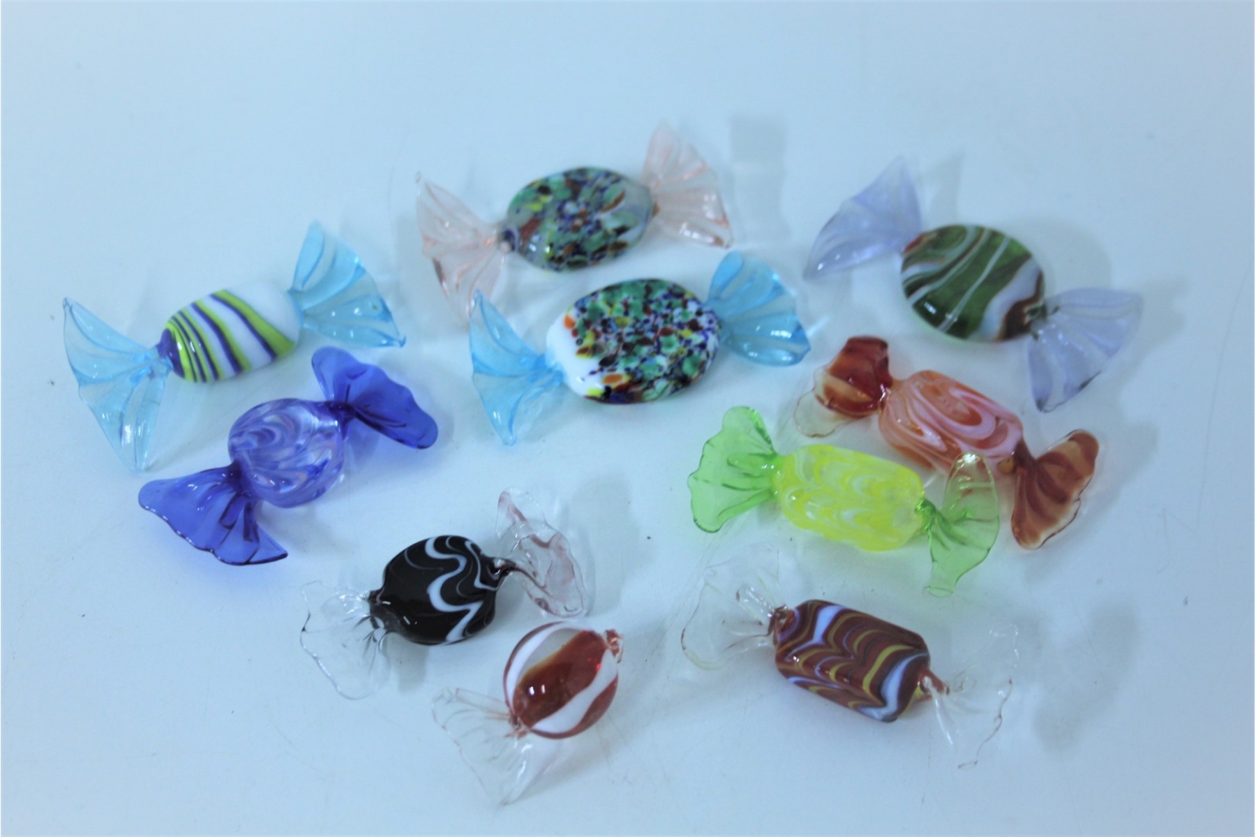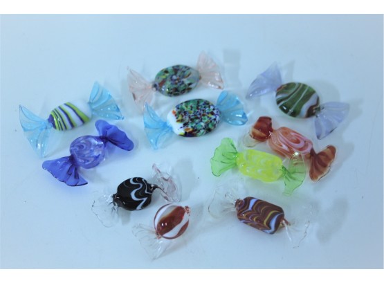 Grouping Of Murano Style Wrapped Candy Pieces - Hand Blown Art Glass