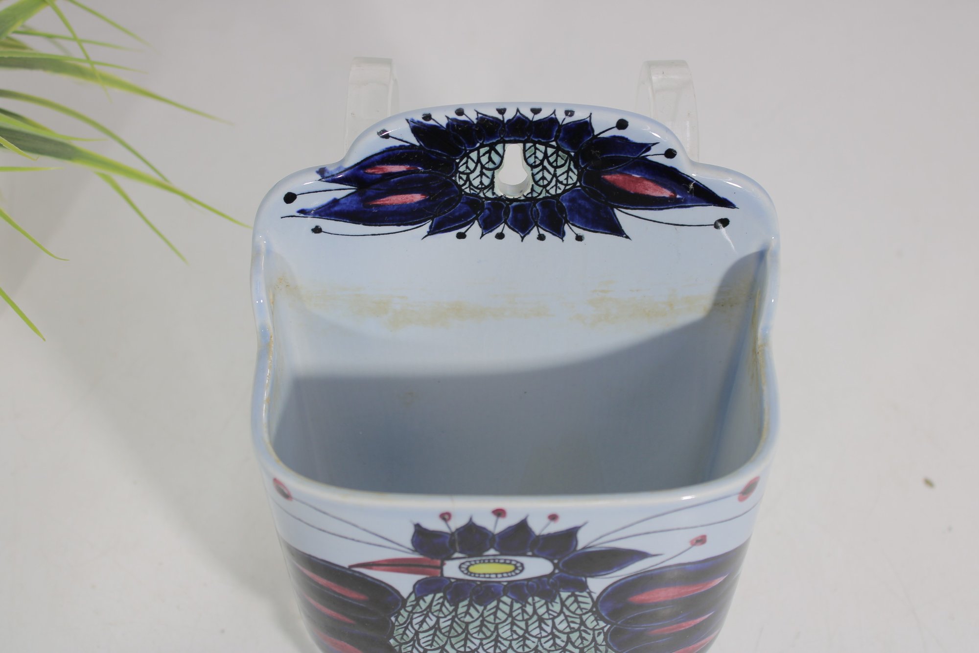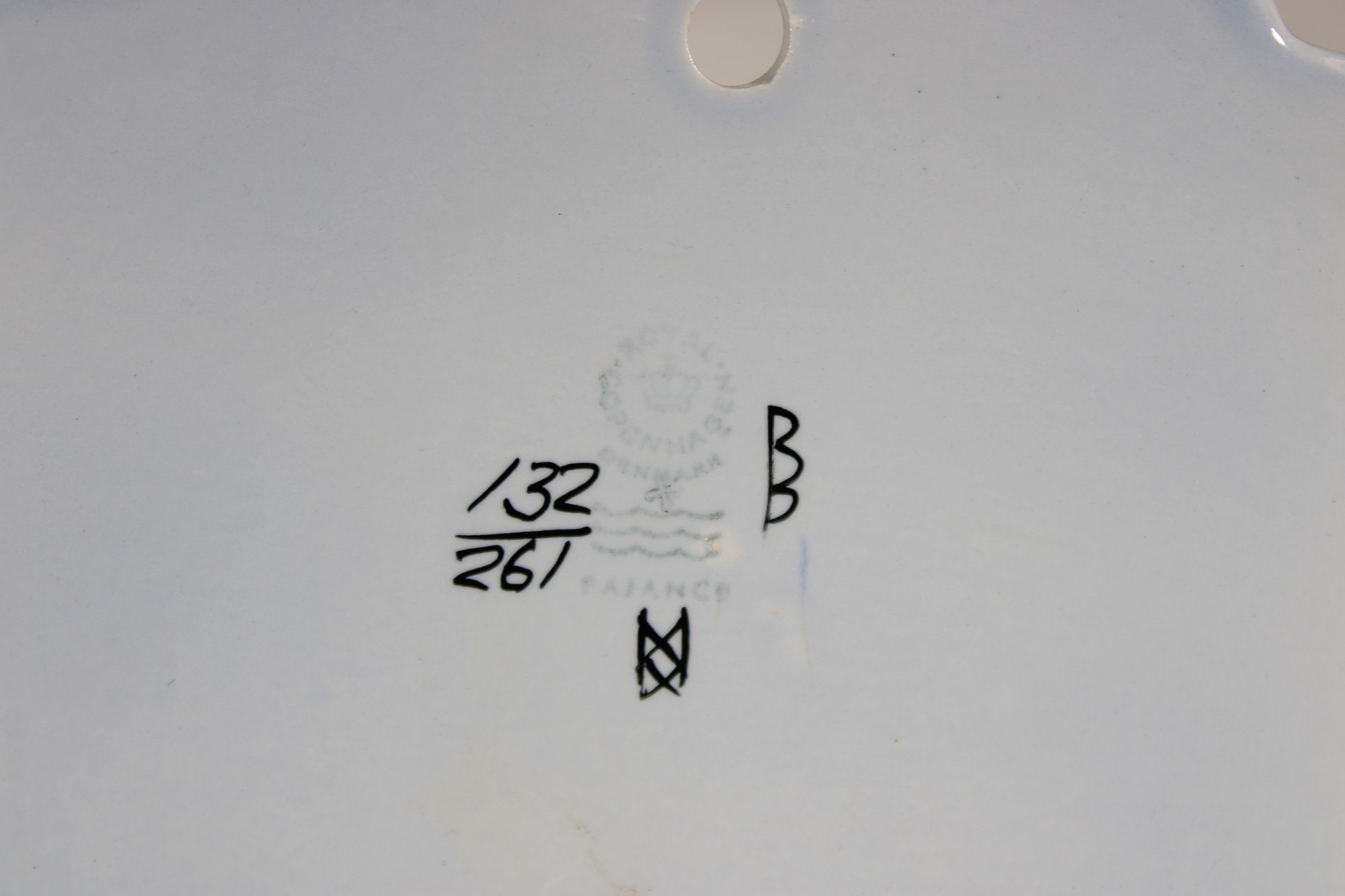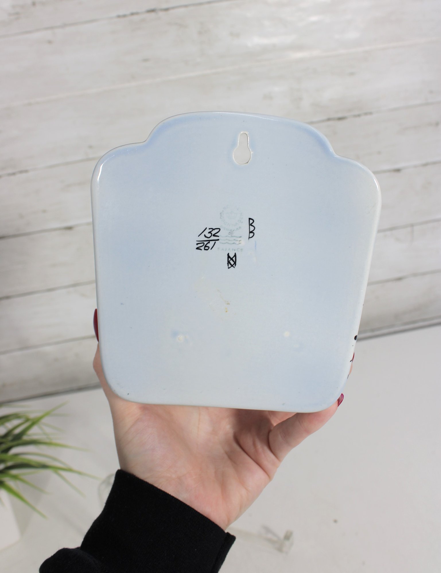The box measures approximately 6” x 6” x 4” and is designed for wall mounting, with holes at the back for easy hanging. The underside bears the Royal Copenhagen mark along with hand-painted numbers, confirming authenticity.