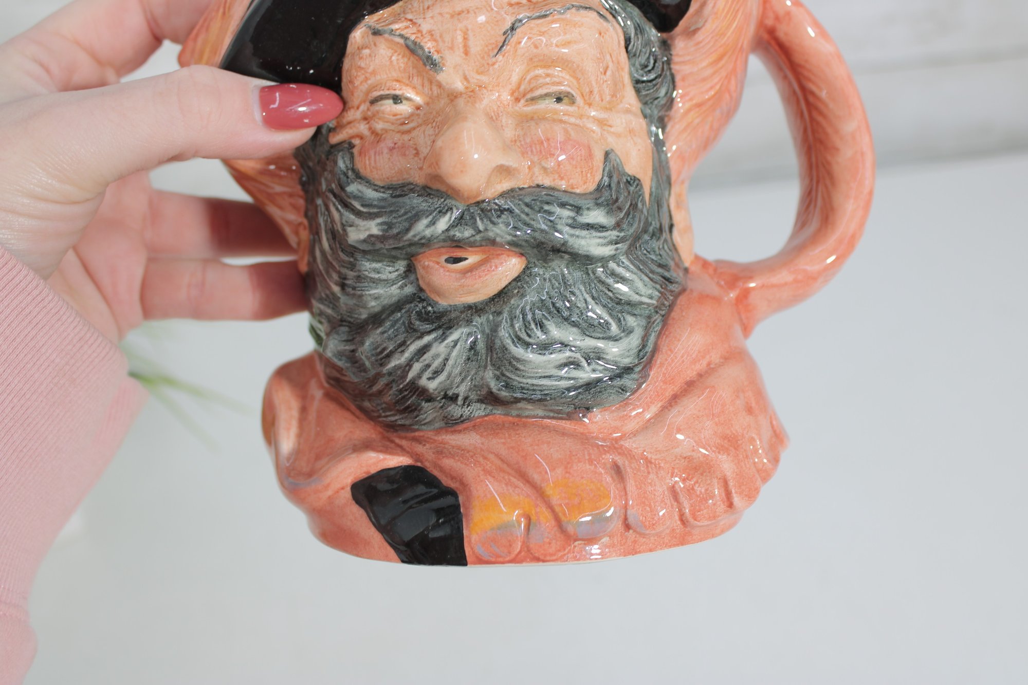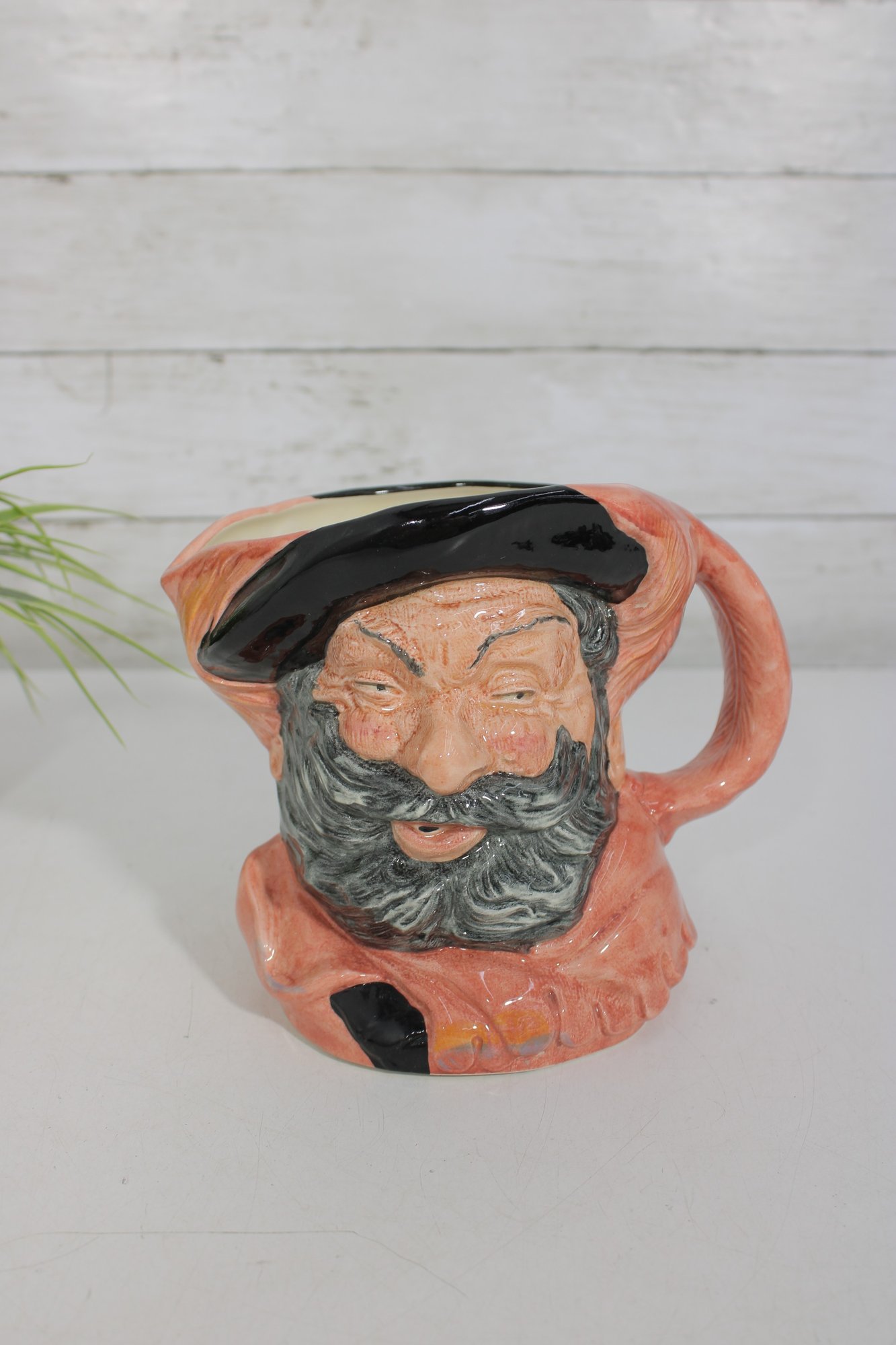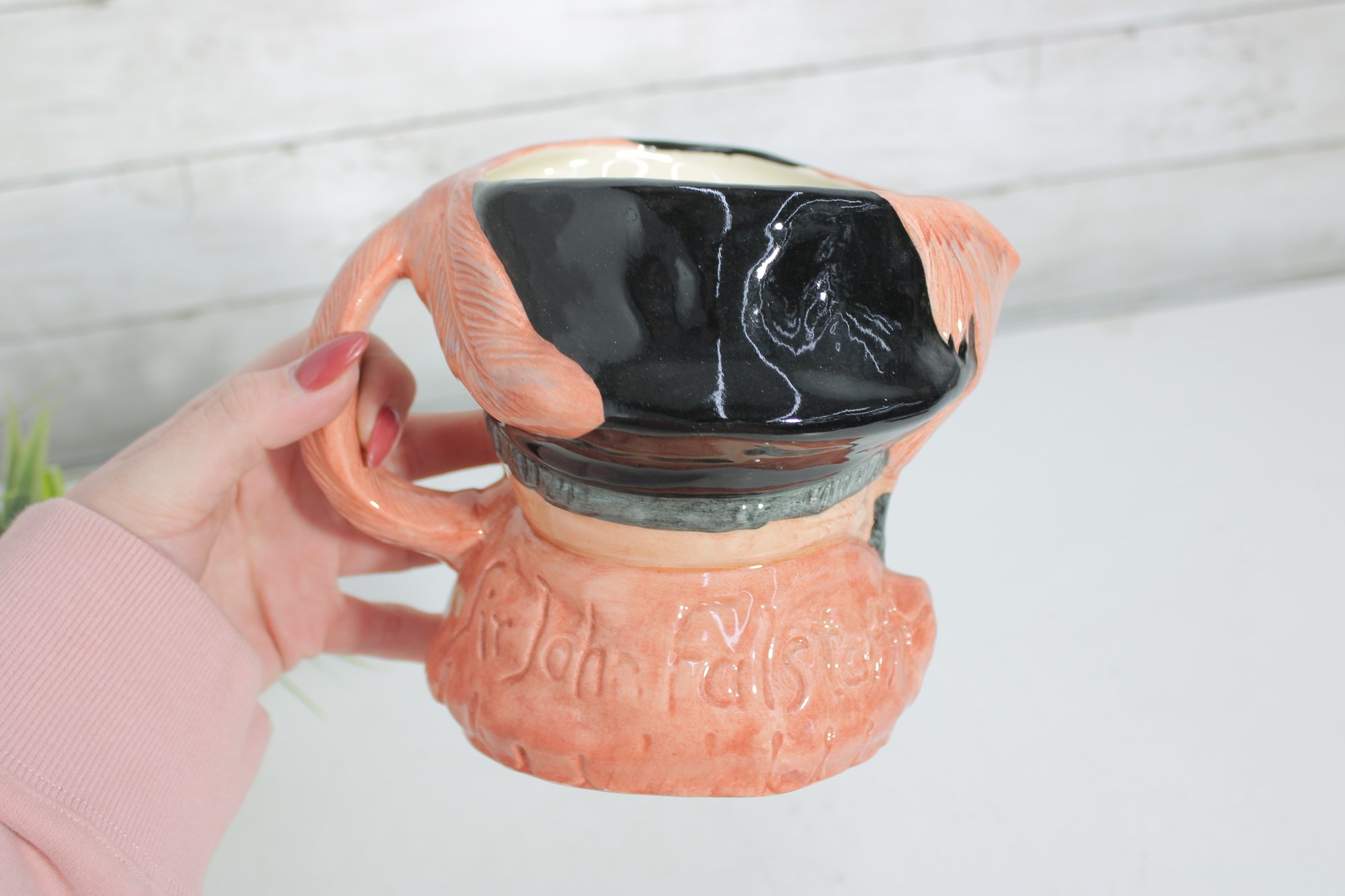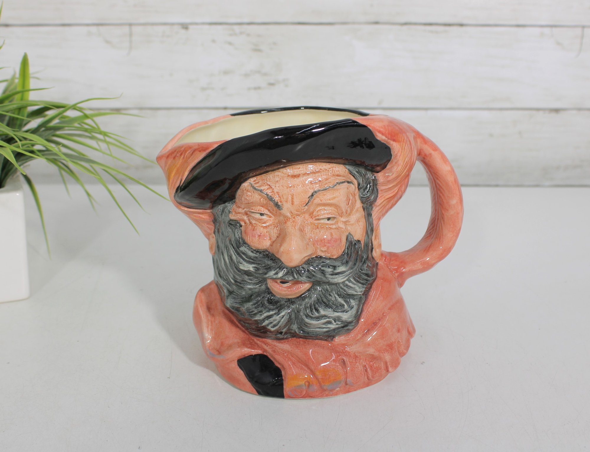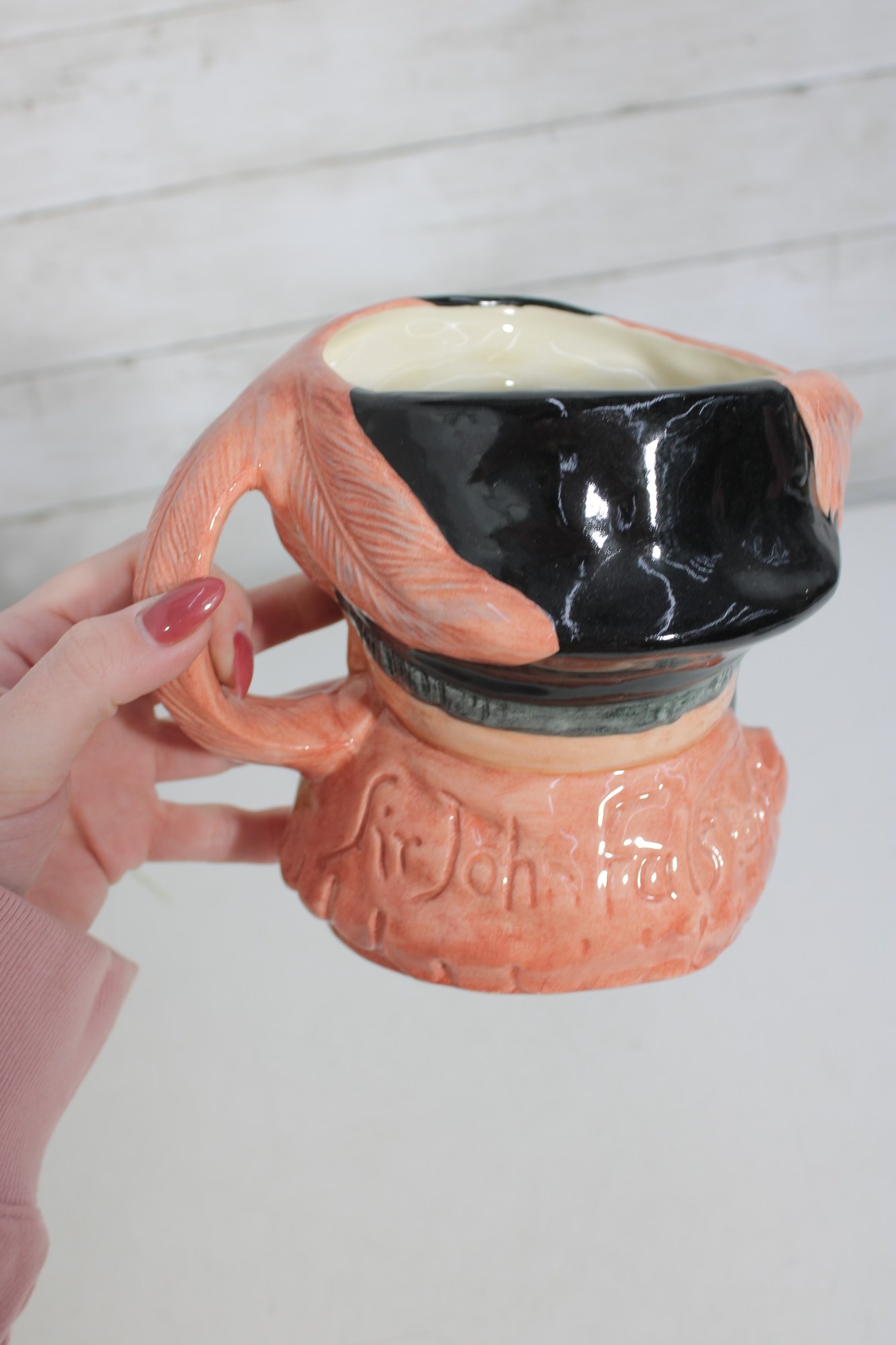 Royal Doulton character jug depicting Falstaff, model D6287. This classic Toby-style mug captures Shakespeare’s beloved, jovial knight with expressive facial detail, rosy cheeks, and richly modeled features that exemplify Royal Doulton’s craftsmanship.