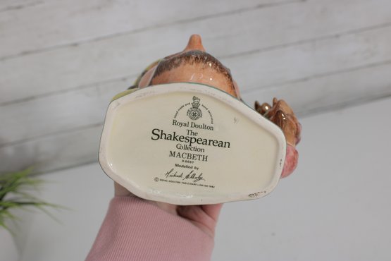The rich hand-painted finish highlights Macbeth’s intense expression, crown, and period styling, while the sculpted handle adds exceptional depth and storytelling to the piece. The base is clearly marked “Royal Doulton – Shakespearean – Macbeth – Made in England”,