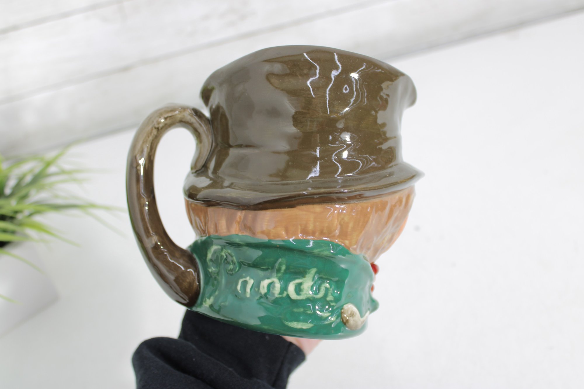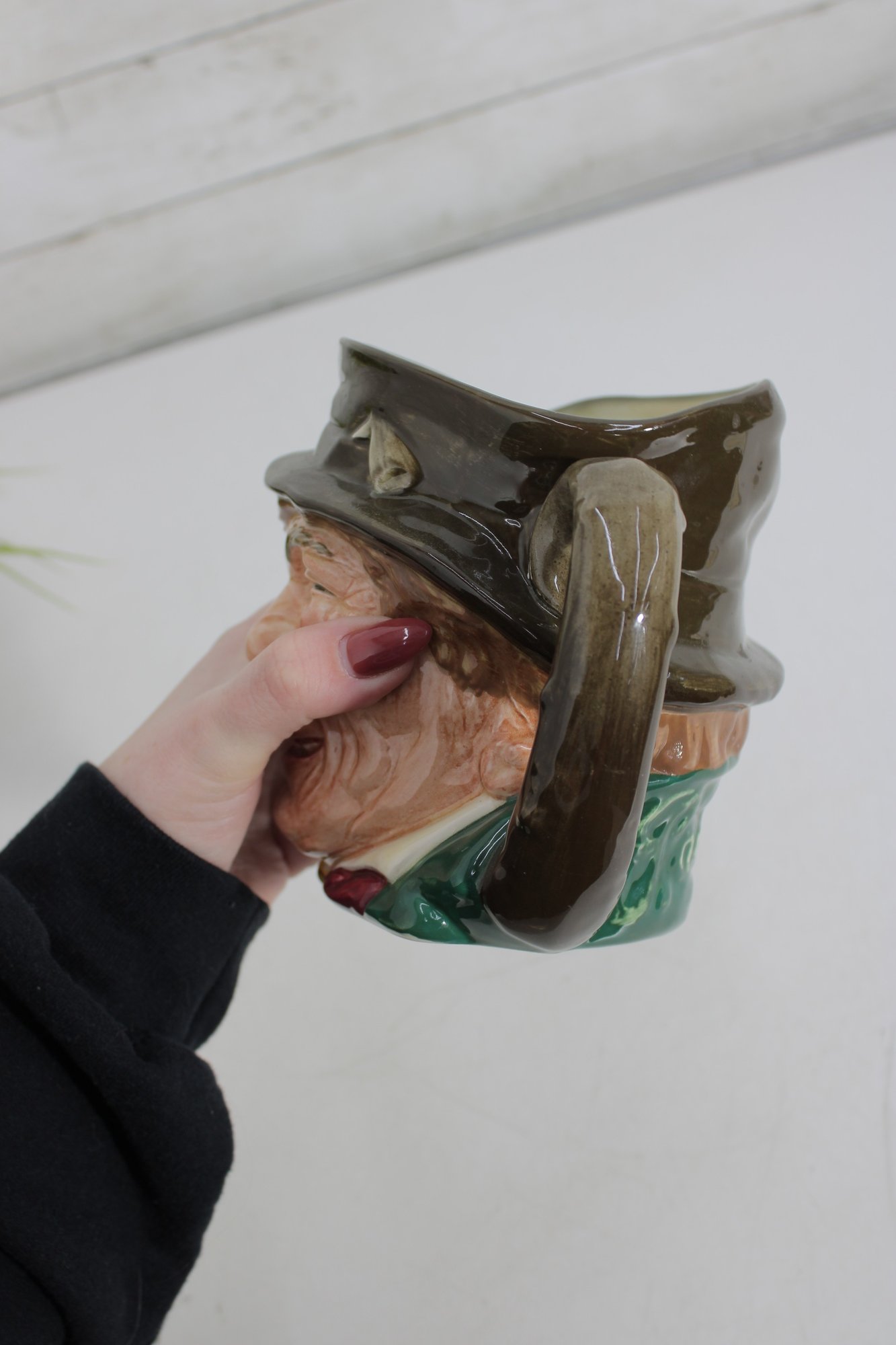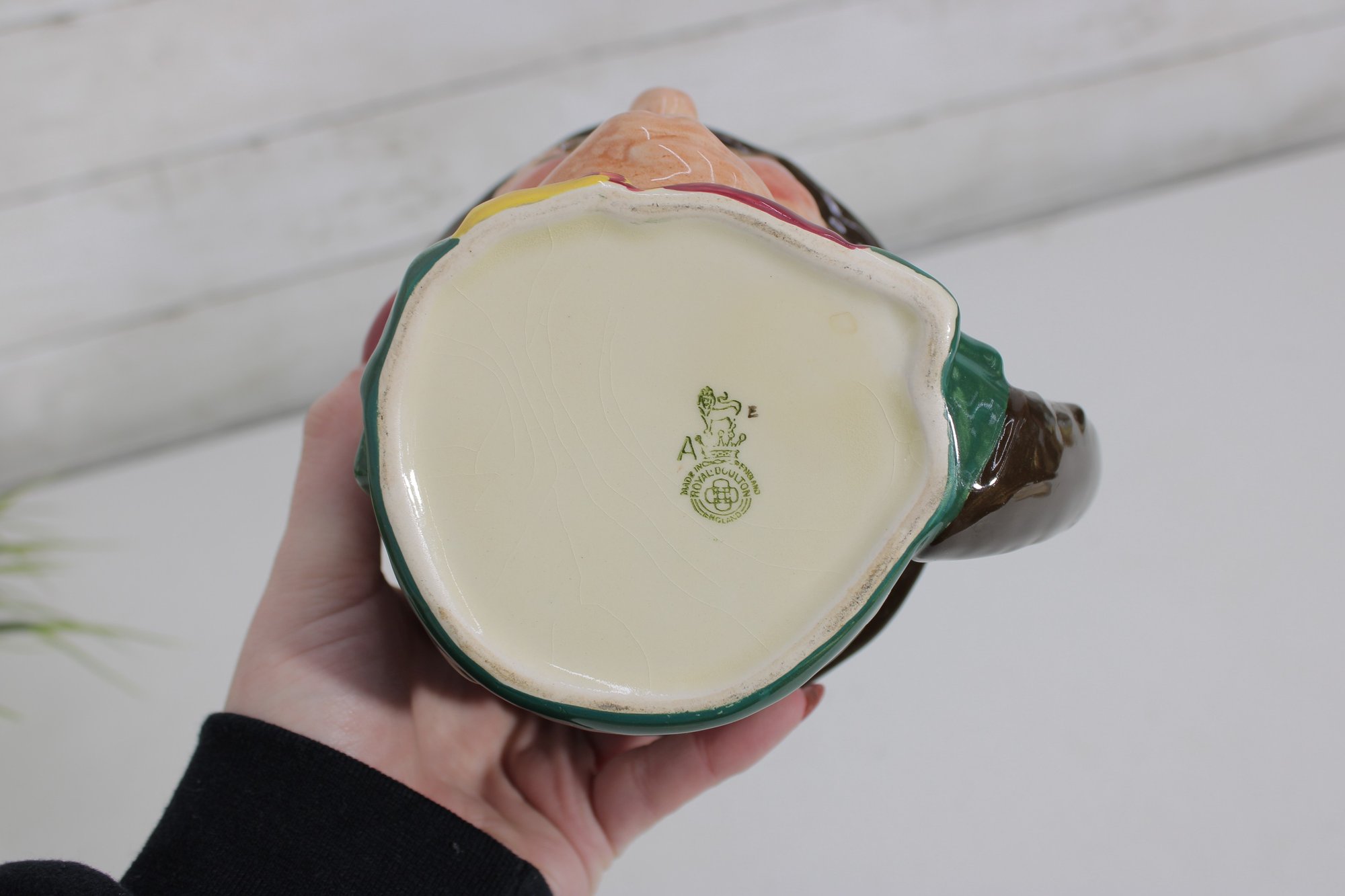 This expressive jug depicts an Irishman with a friendly face, wearing a cap and traditional attire, full of the warmth and storytelling detail Royal Doulton is famous for. The sculpted features, hand-painted colors, and glossy glaze give this piece wonderful display presence and classic character.