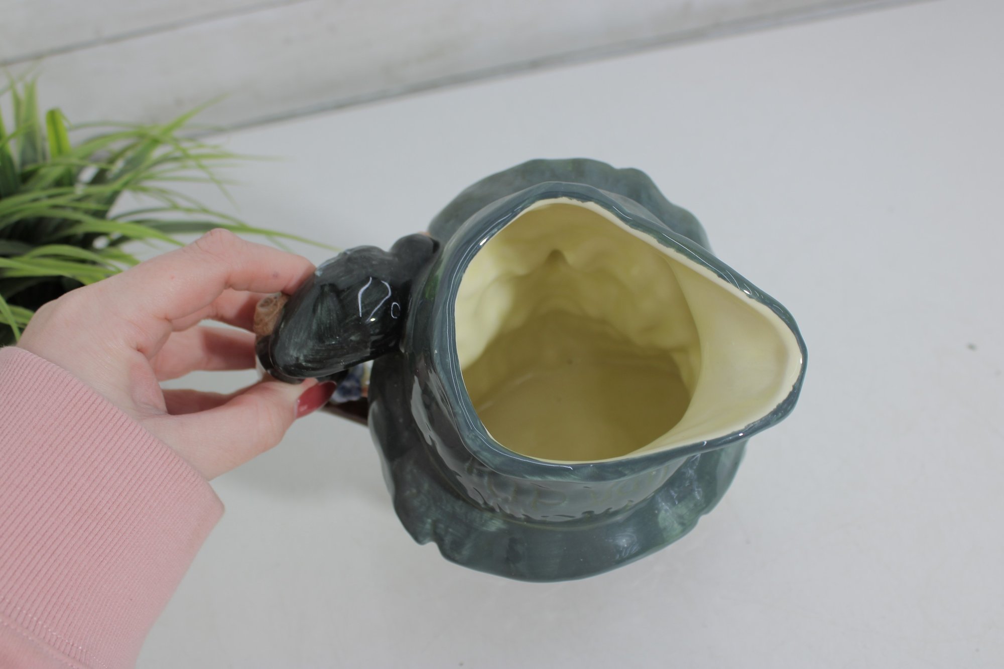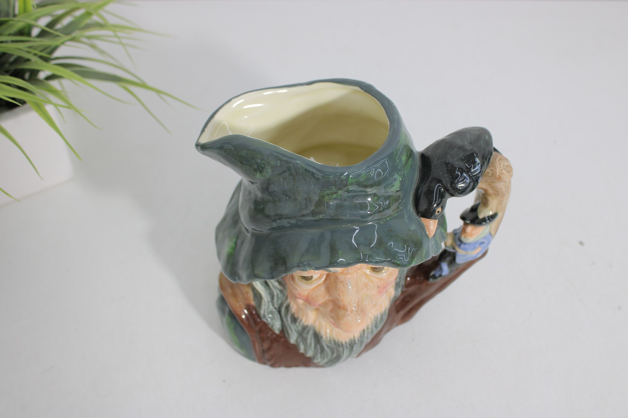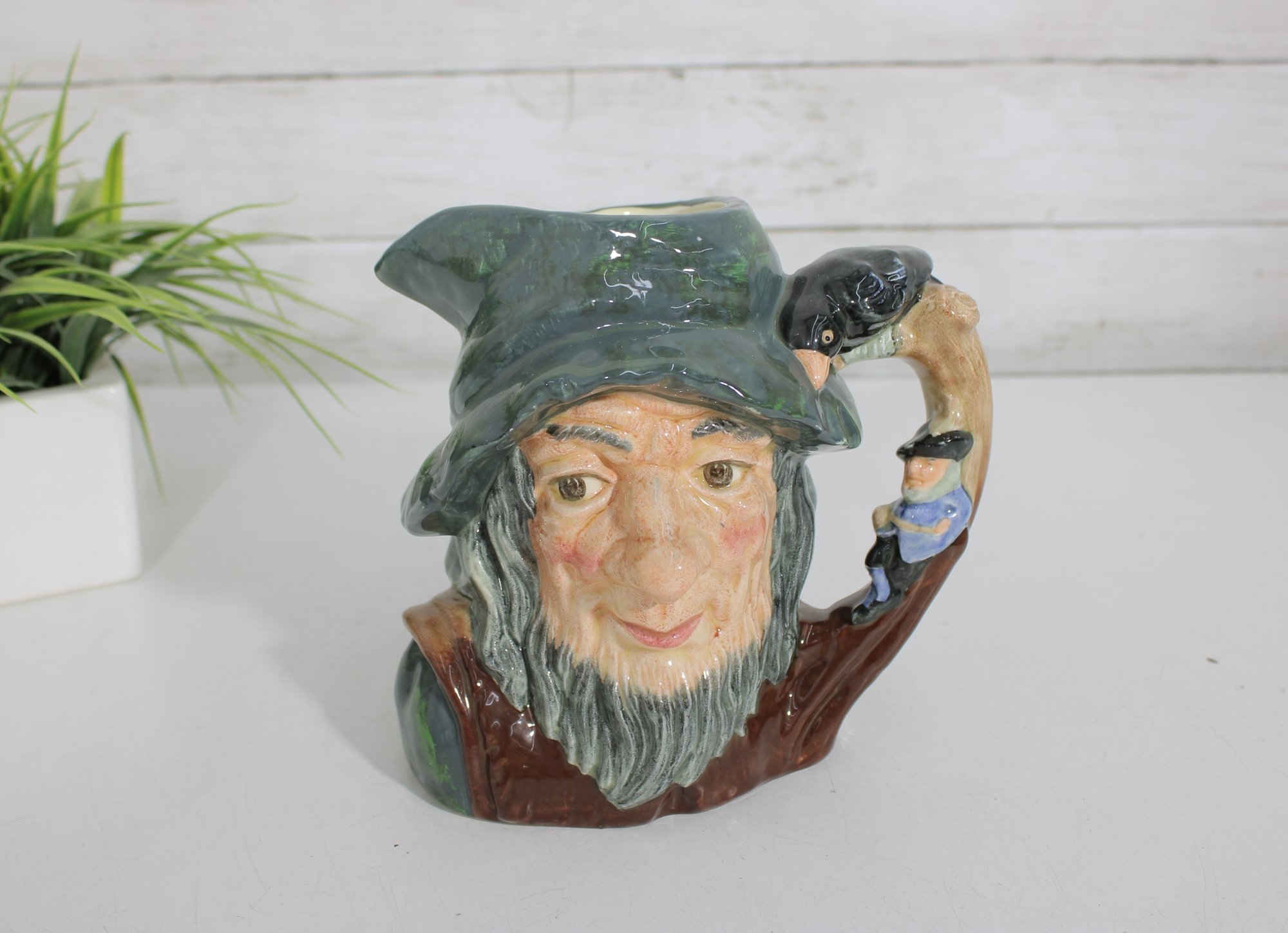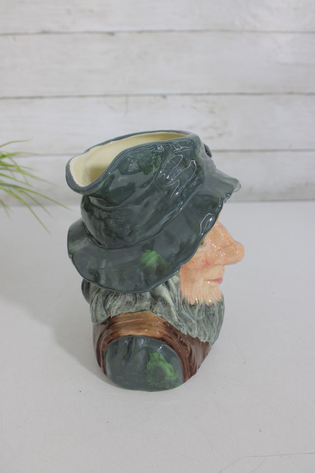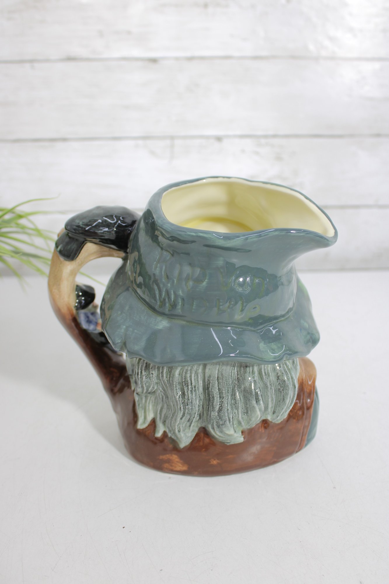 The hand-painted finish highlights expressive features, natural skin tones, and richly glazed greens and browns. The base is clearly marked “Rip Van Winkle – Made in England