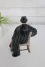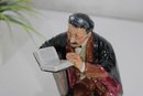 This expressive piece stands approximately 7 inches tall and depicts a scholarly gentleman seated and deeply absorbed in a book. The figure features wonderful hand-painted detail — from the thoughtful facial expression and spectacles to the rich tones of his coat and trousers. A stack of books at his feet and the reading stand add depth and storytelling charm. The glossy glaze highlights Royal Doulton’s fine craftsmanship.