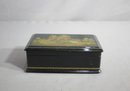 Encased in a glossy black lacquer finish, the box is accented with ornate golden borders that highlight the artistry of the miniature painting. The interior is smooth and perfect for housing small, precious items. This piece is not only a functional trinket box but also a work of art that captures a slice of history.