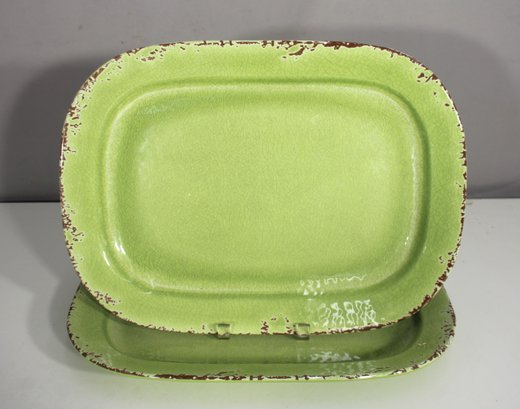 Elevate your farmhouse or rustic kitchen style with this vibrant green enamel serving platter by Williams Sonoma, from their Rustic Enamelware Collection. Measuring 17" x 12.5", this large rectangular platter is perfect for serving meats, appetizers, or seasonal spreads in bold style.