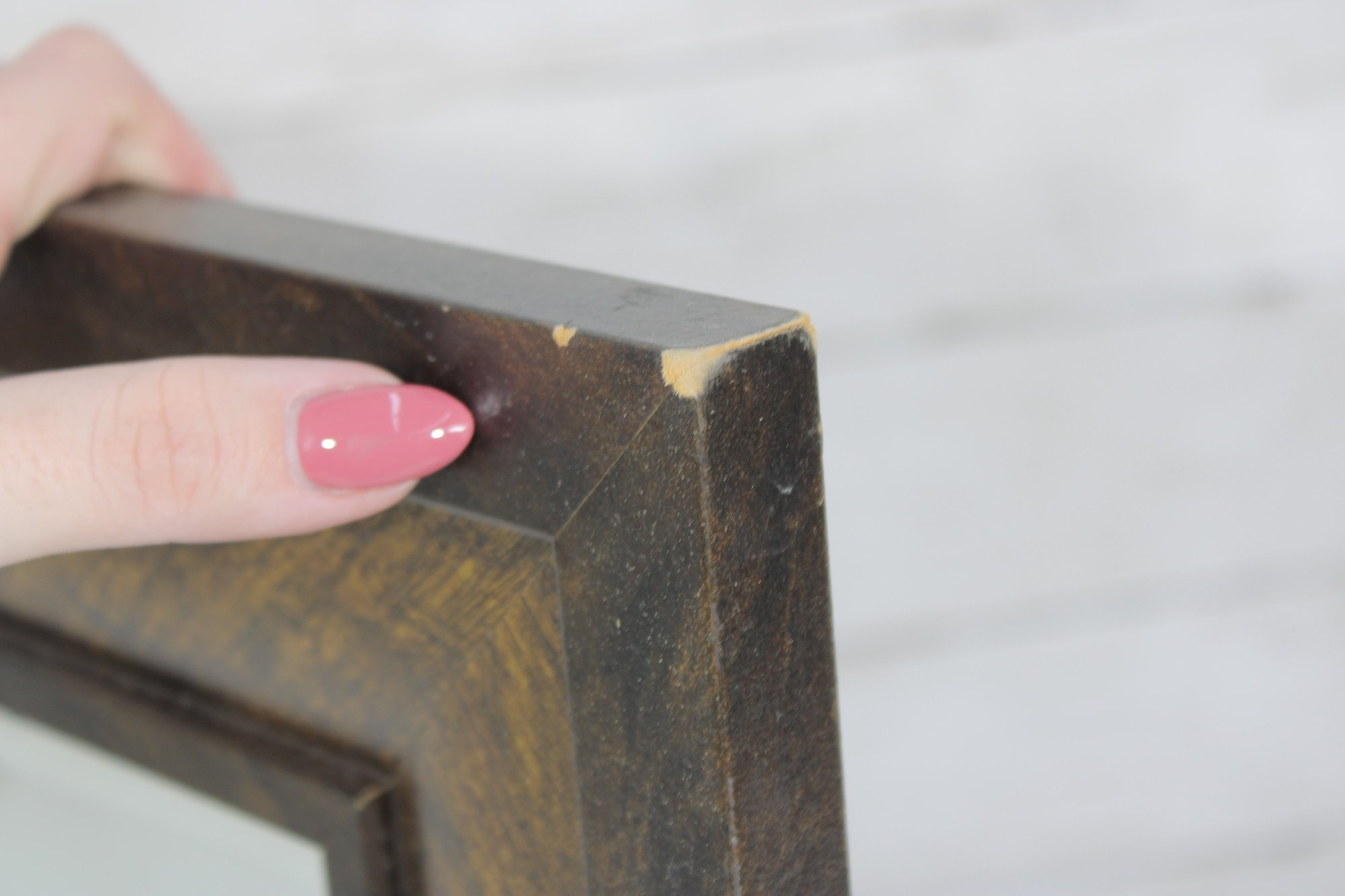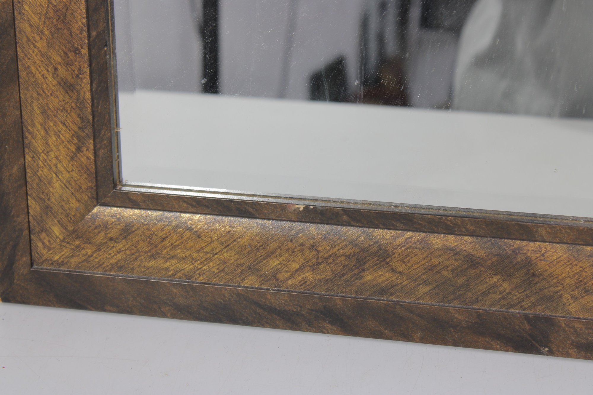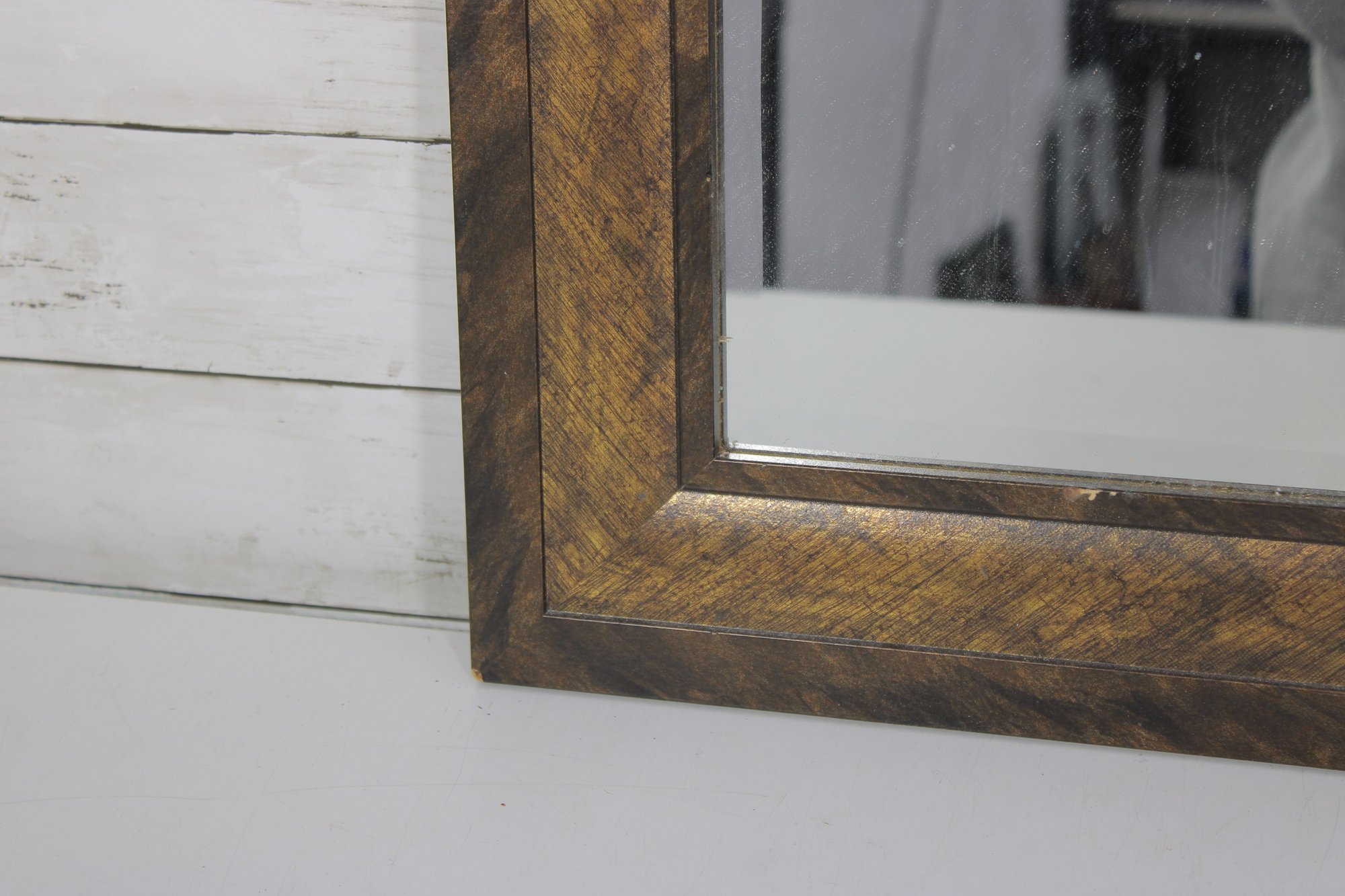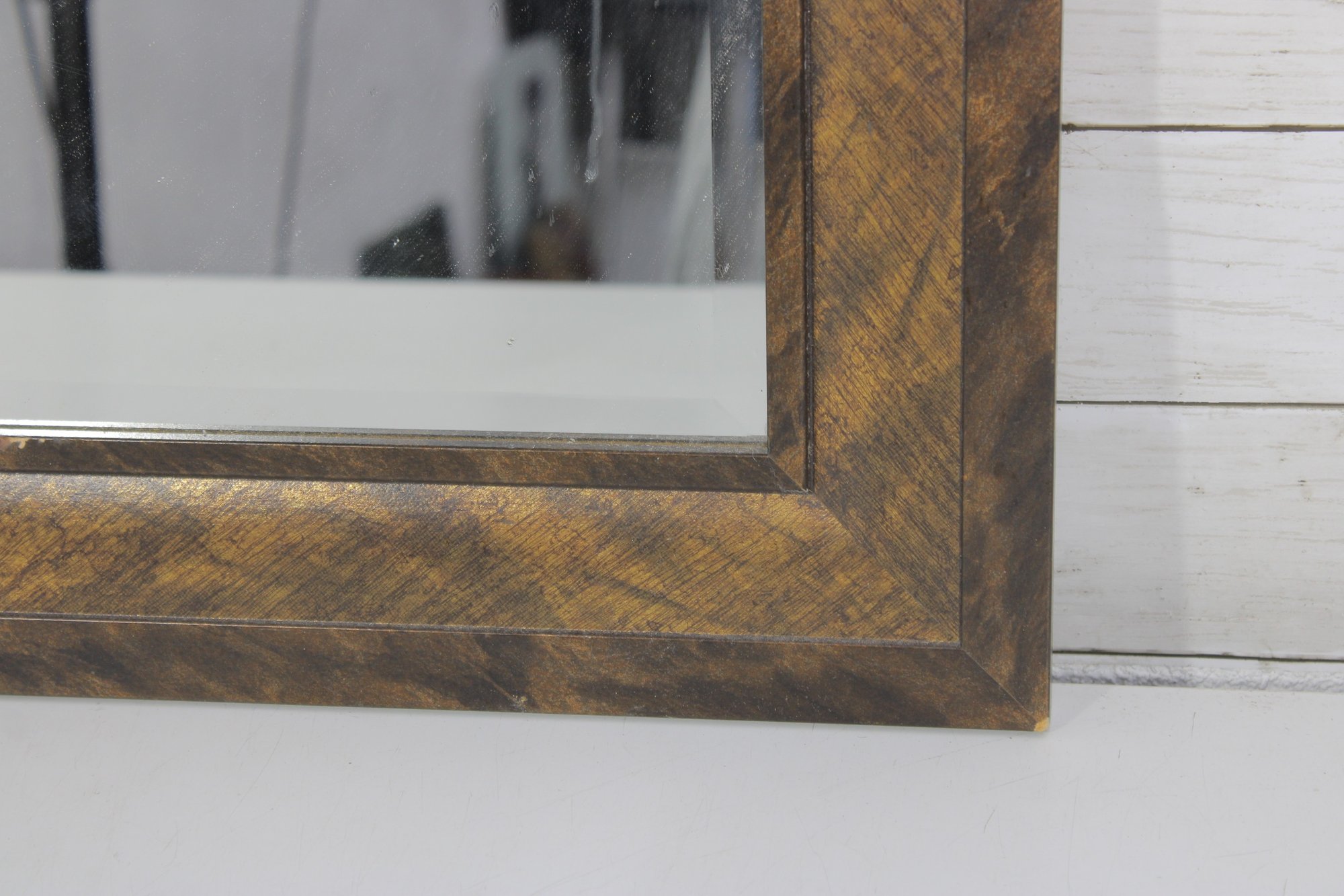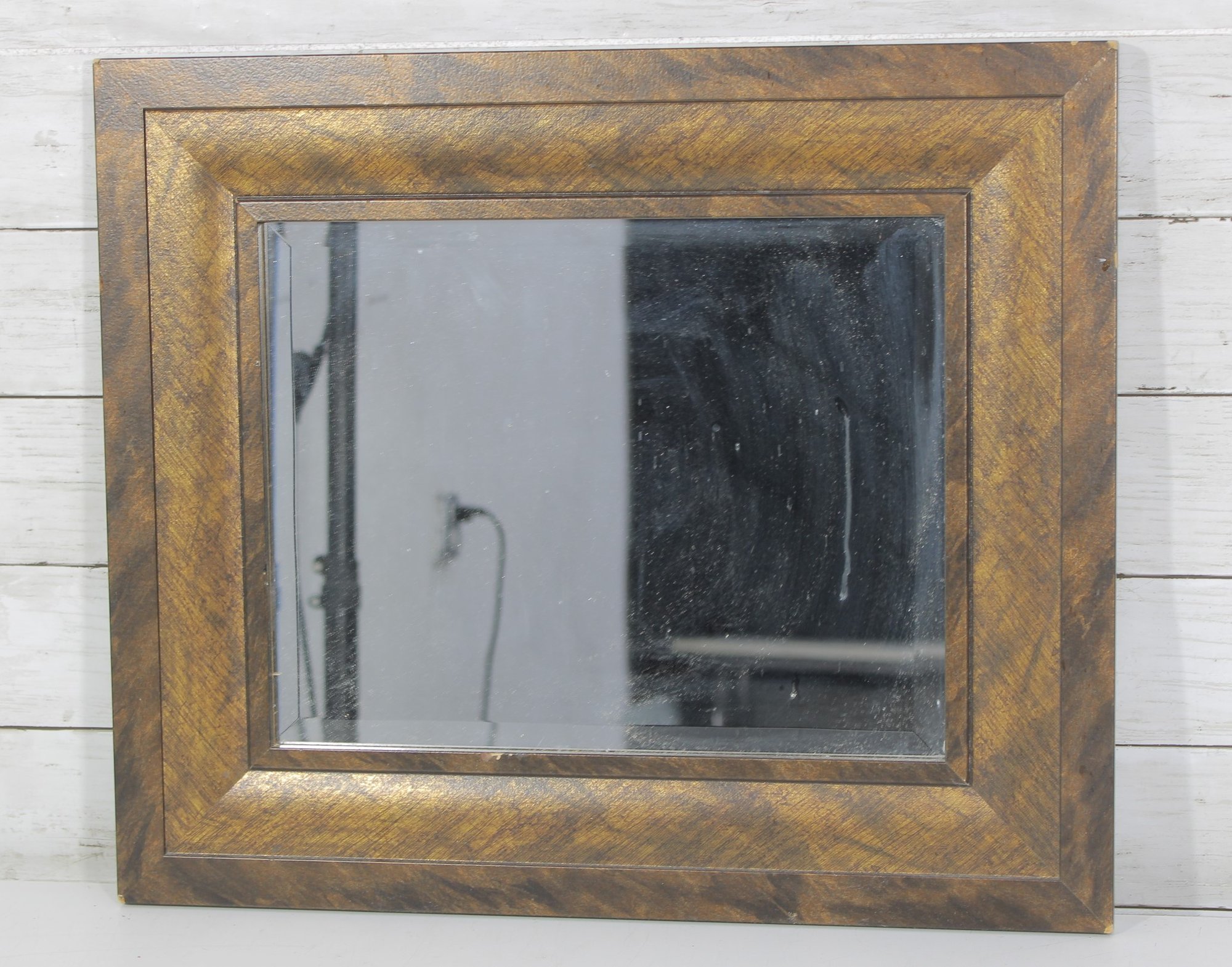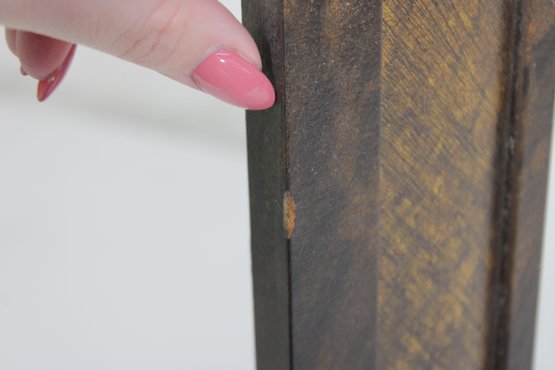 The frame showcases a layered, dimensional design with a distressed finish that highlights the wood’s character and variation. Its versatile rectangular shape makes it a great accent piece for entryways, bedrooms, bathrooms, or gallery walls.