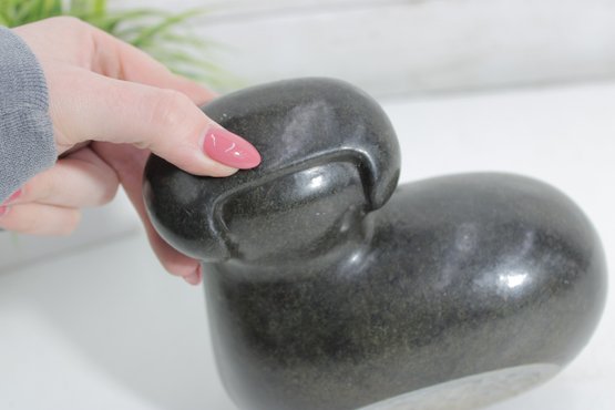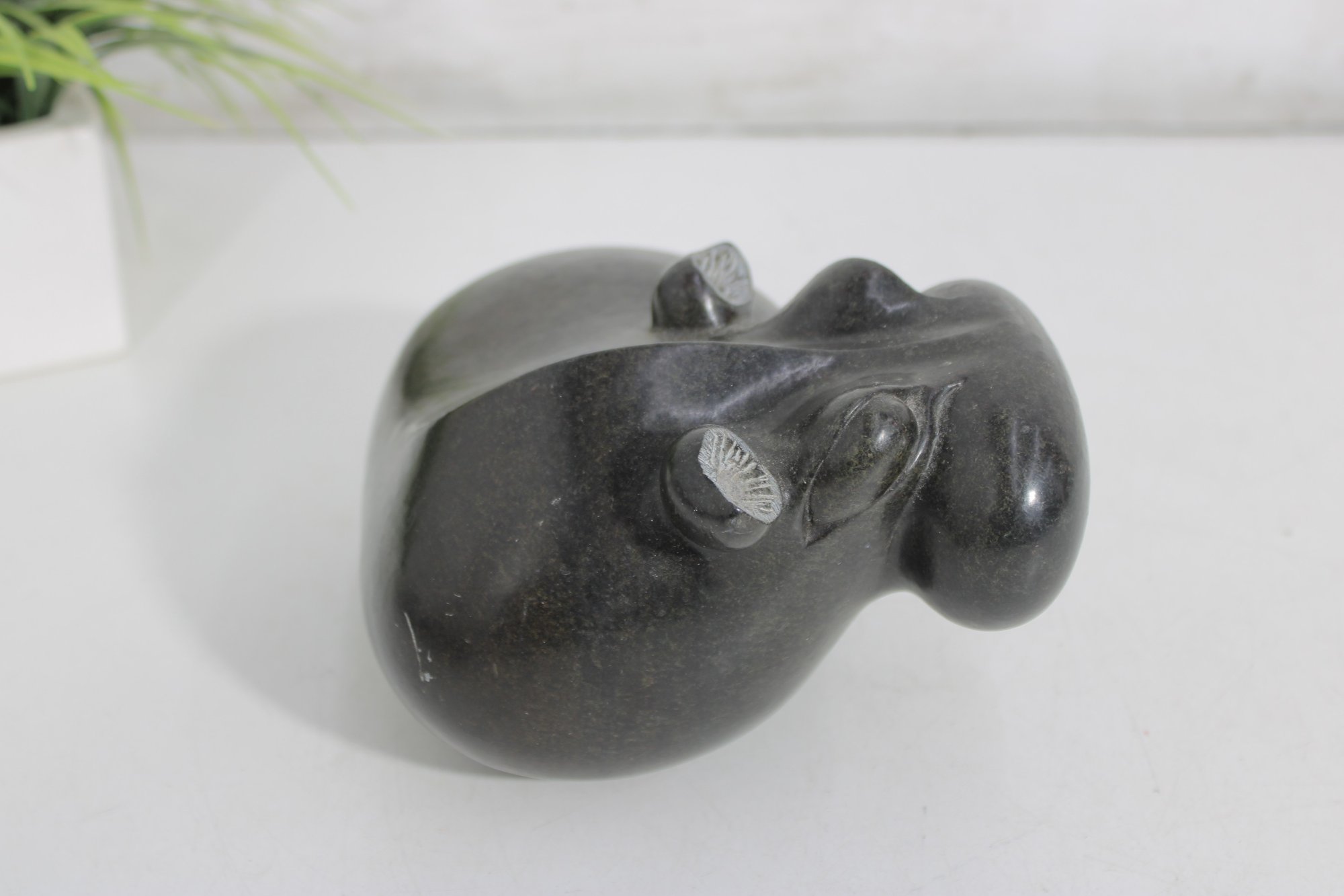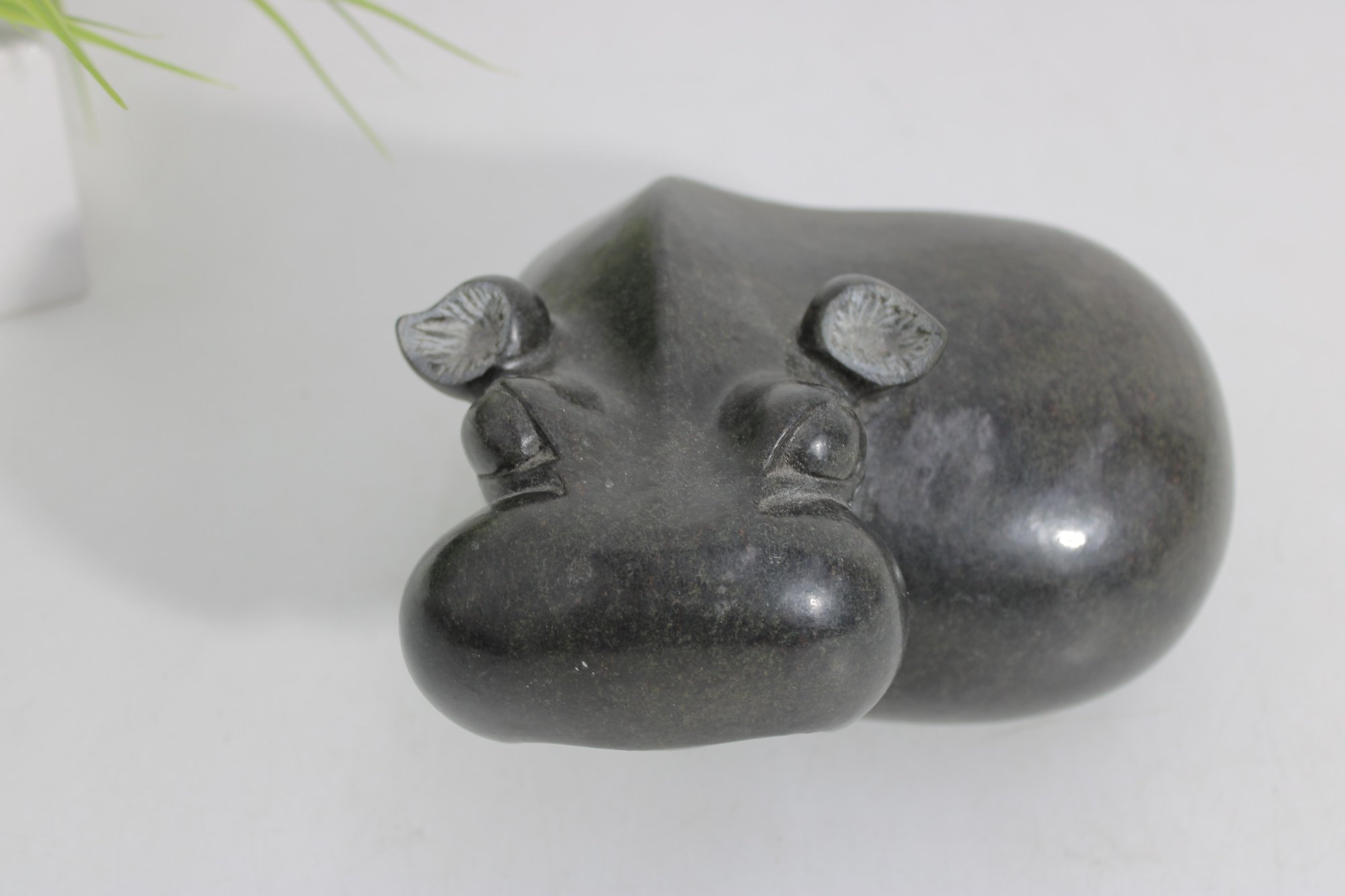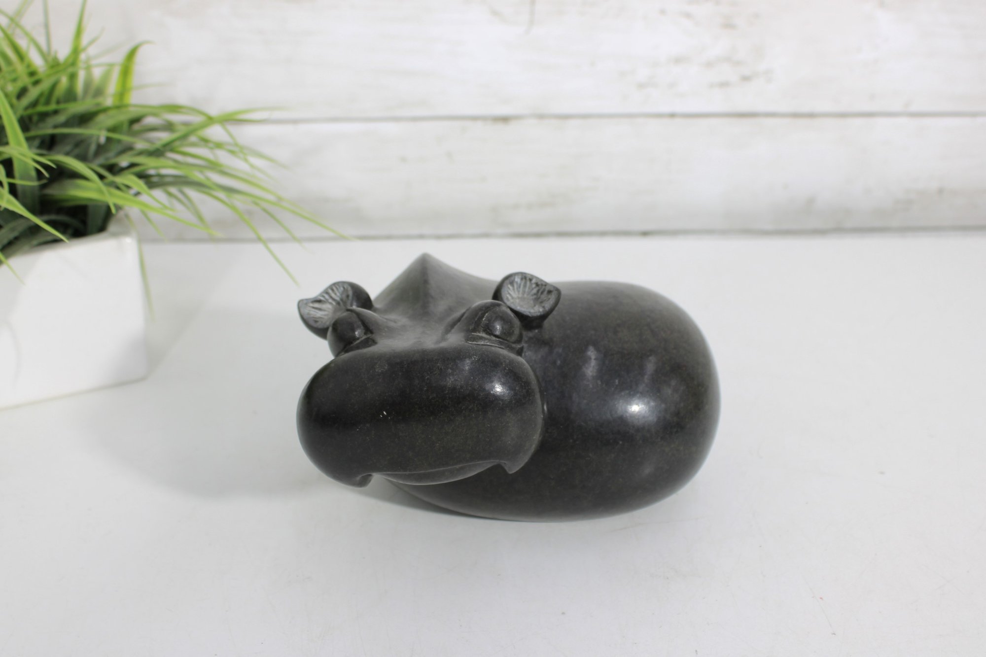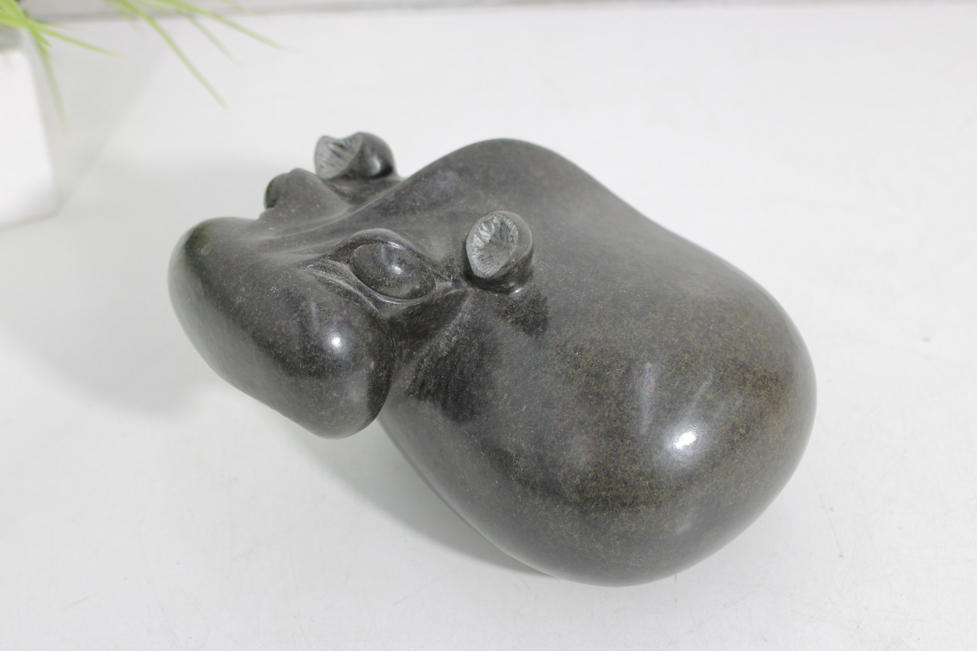 Measuring approximately 4.5 inches high, this sculpture has a substantial, solid feel and a minimalist, modern aesthetic while still capturing the playful character of a hippo. A wonderful addition to any collection of animal carvings, stone art, or safari-inspired décor.