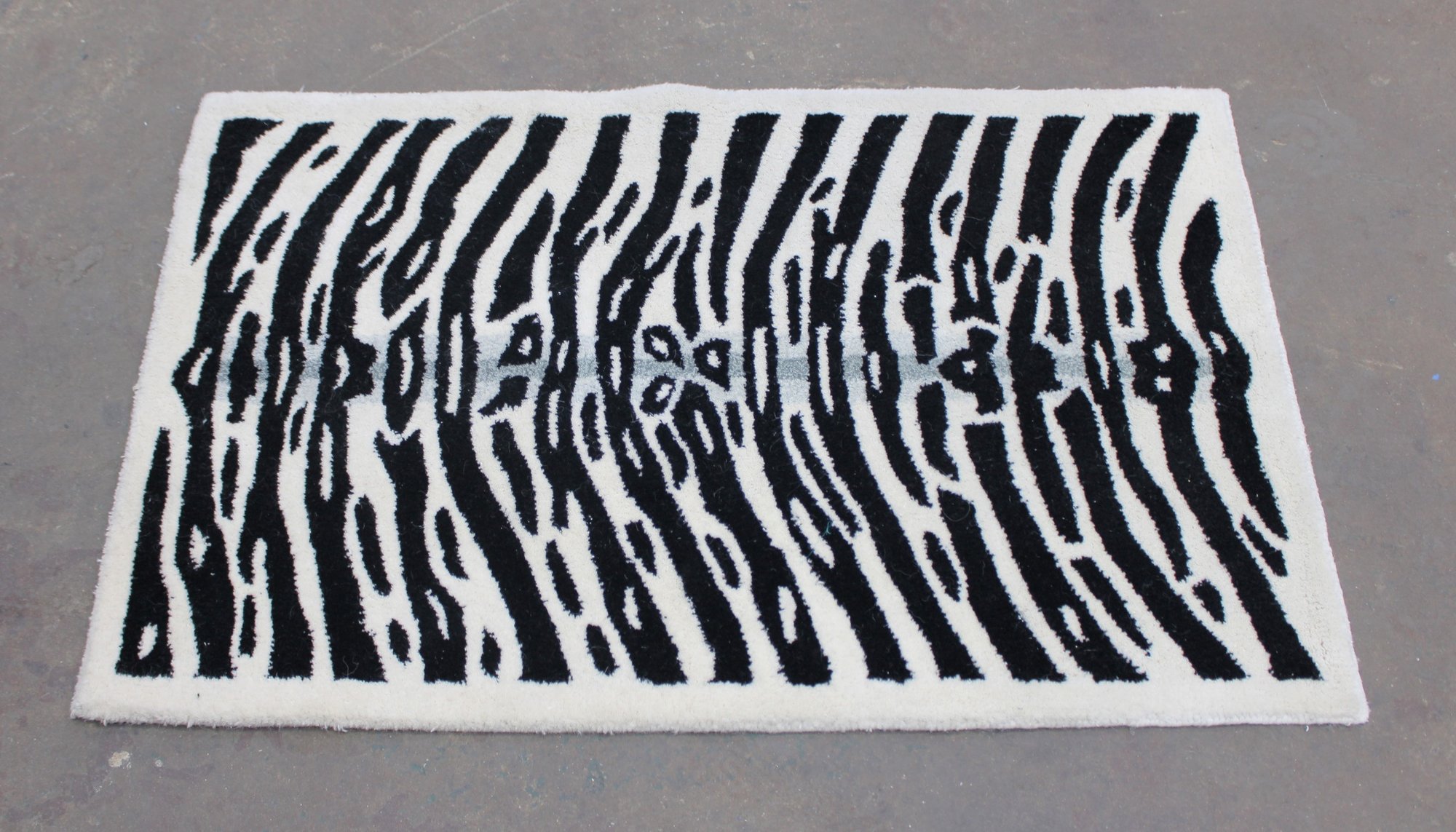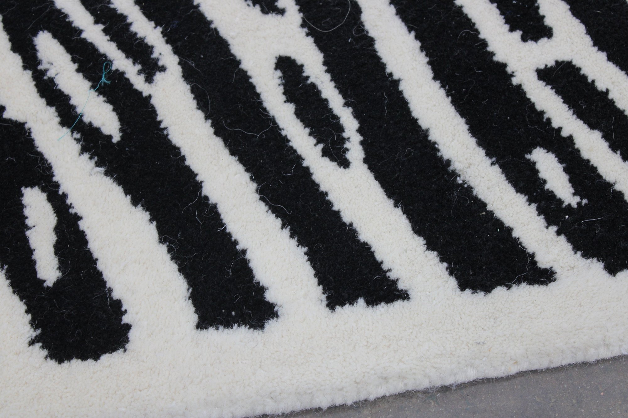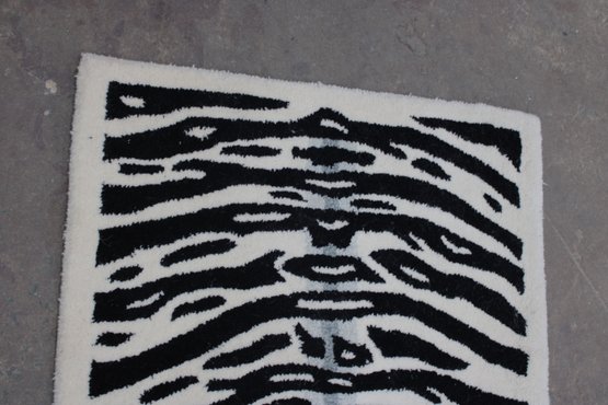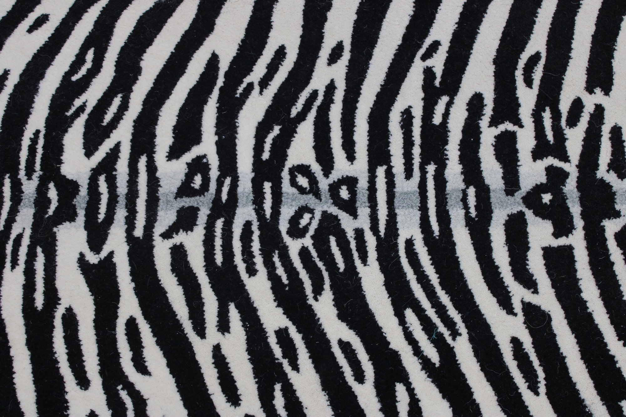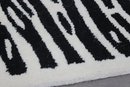 Stylish Sahara Collection accent rug featuring a bold zebra print design in classic black and white. The flowing stripe pattern creates movement and visual texture, making this rug a standout decorative piece while still working as a neutral.