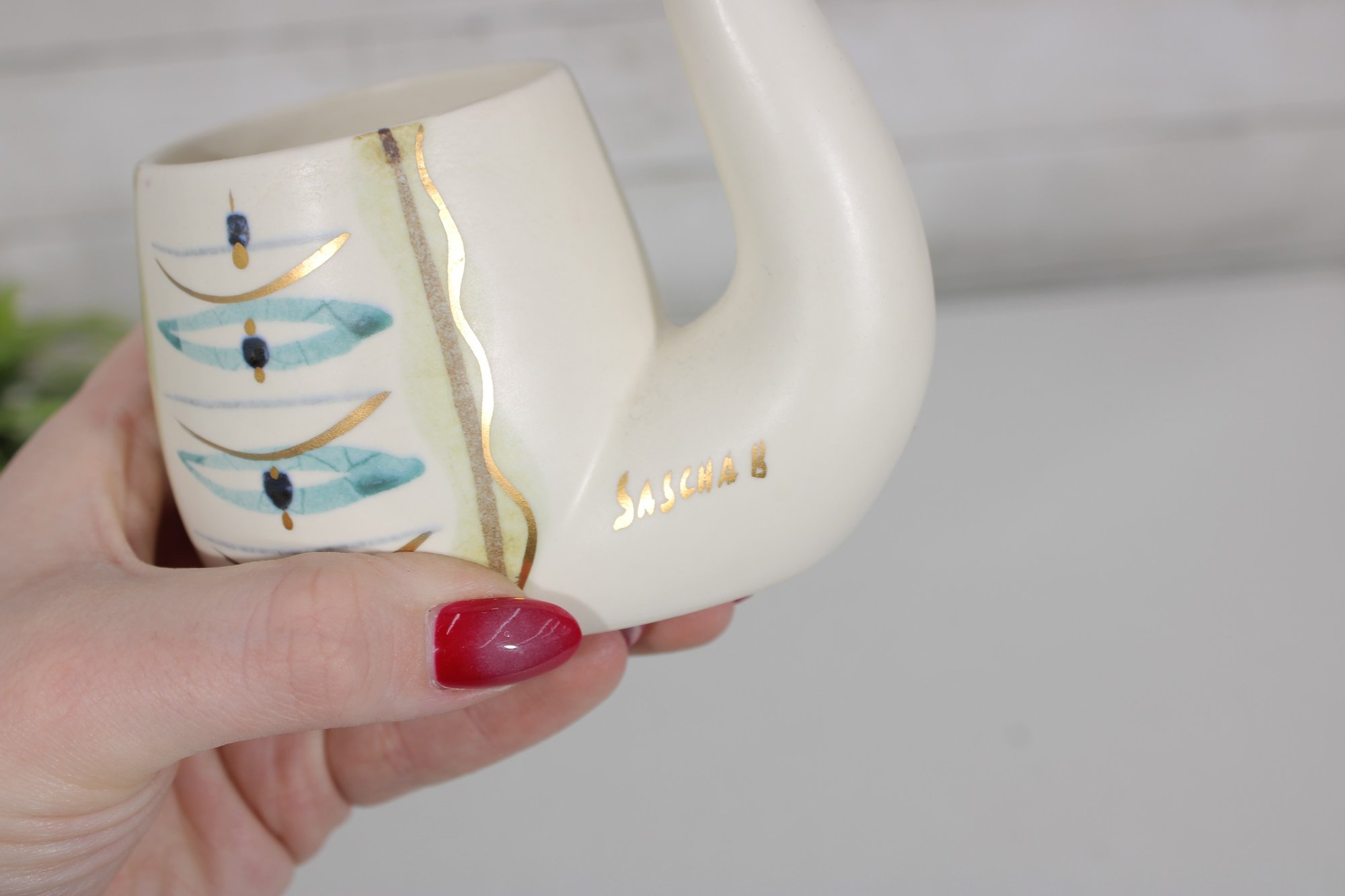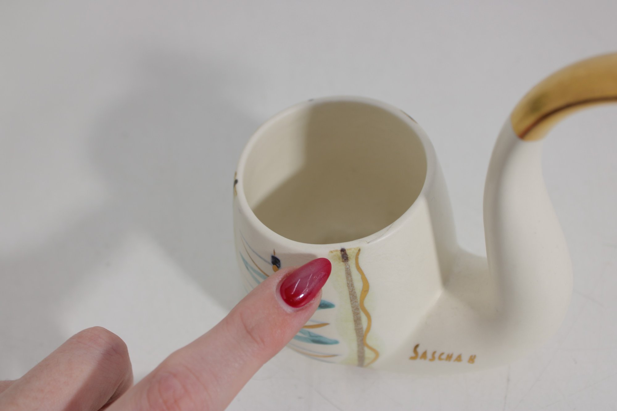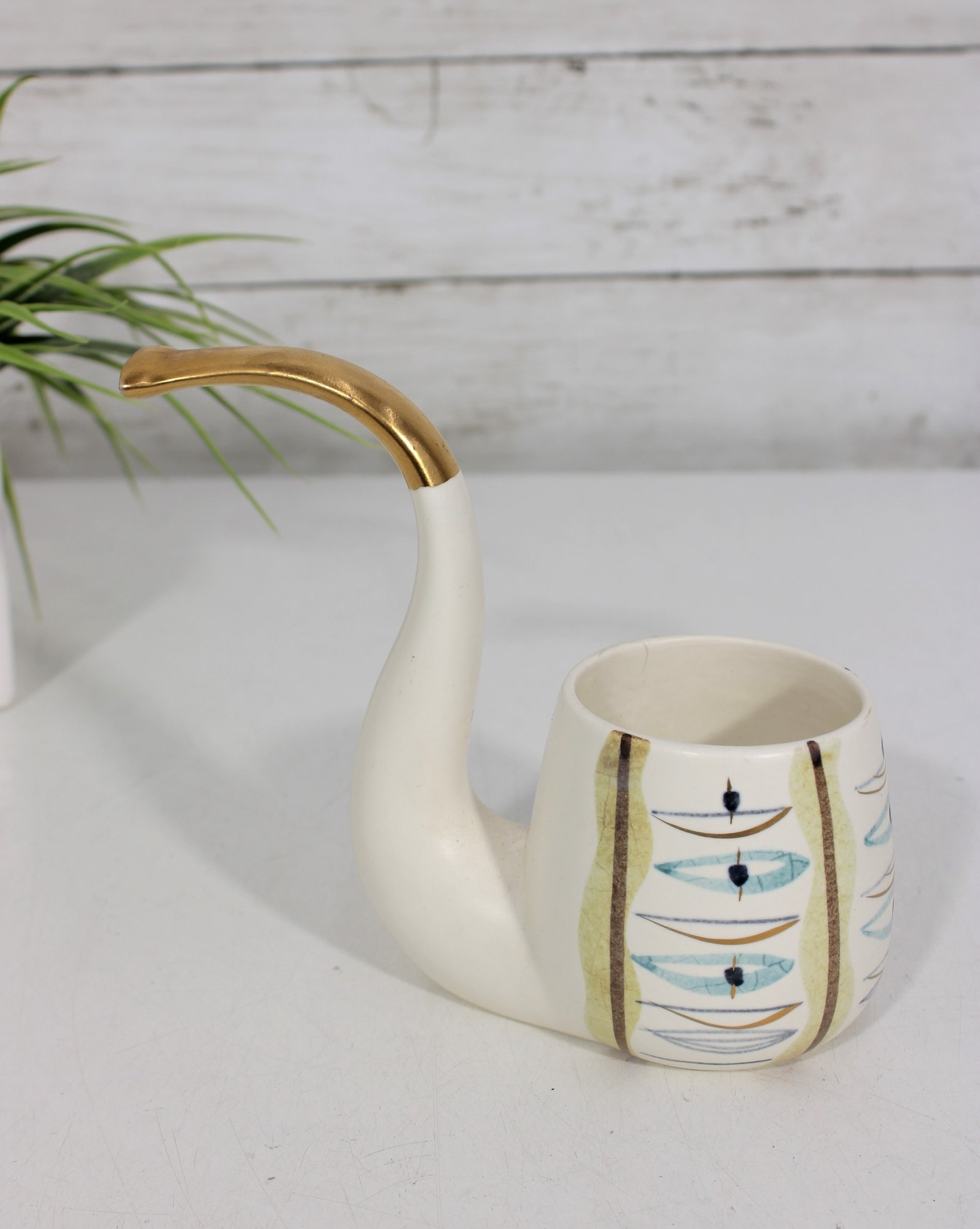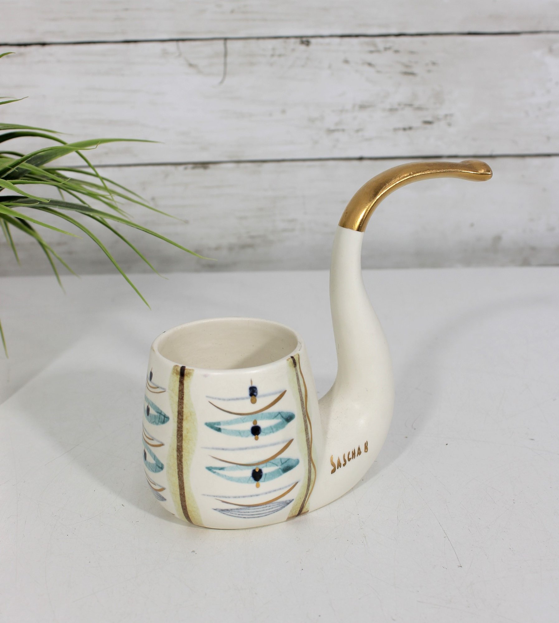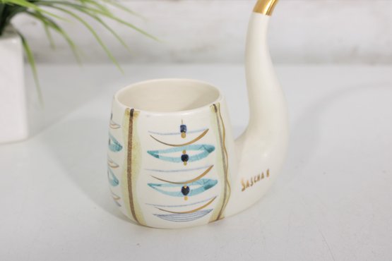 SASCHA BRASTOFF Ceramic MCM Hand Painted Pipe Planter - 5.25"