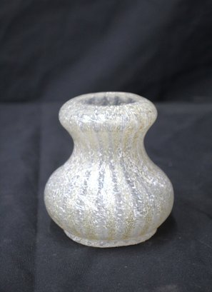 a rare and exquisite piece to your collection with this Dugan Glass Opal Venetian Pompeian Frit Vase. Known for its intricate craftsmanship and unique design, this vase is a testament to the skilled artisans of the Dugan Glass Company. The opalescent glass features a beautiful frit pattern, creating a captivating texture and visual appeal.