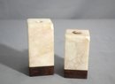 these "Sense & Sensibility" themed marble bookends. Each bookend is crafted from high-quality marble, featuring a soft beige hue with subtle veining, complemented by a rich walnut base that enhances their visual appeal and stability. These bookends not only serve as functional supports for your books but also as sophisticated decor pieces.