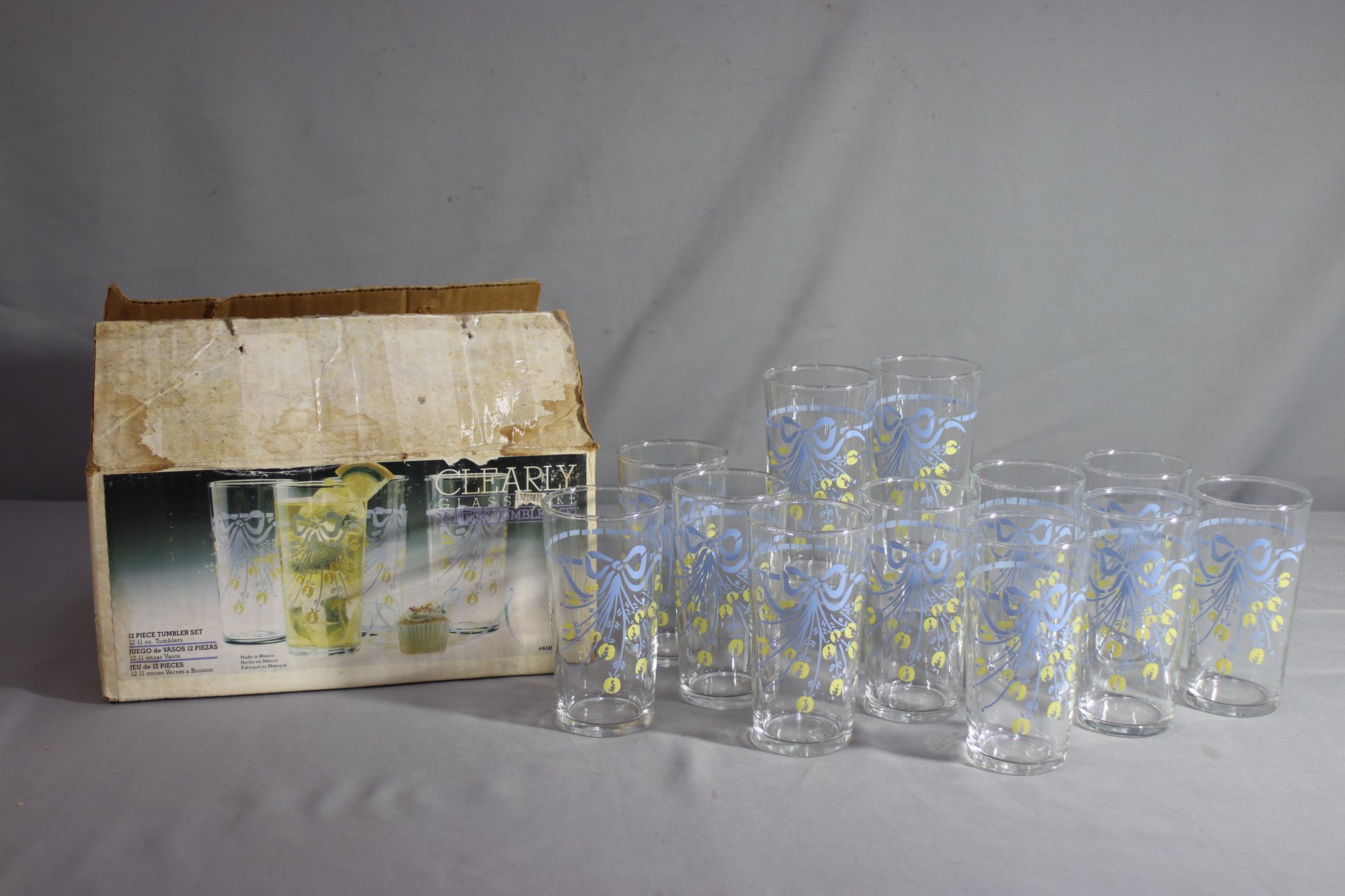 Set Of 12 -Clearly Blue Ribbon Bow- Yellow Flowers