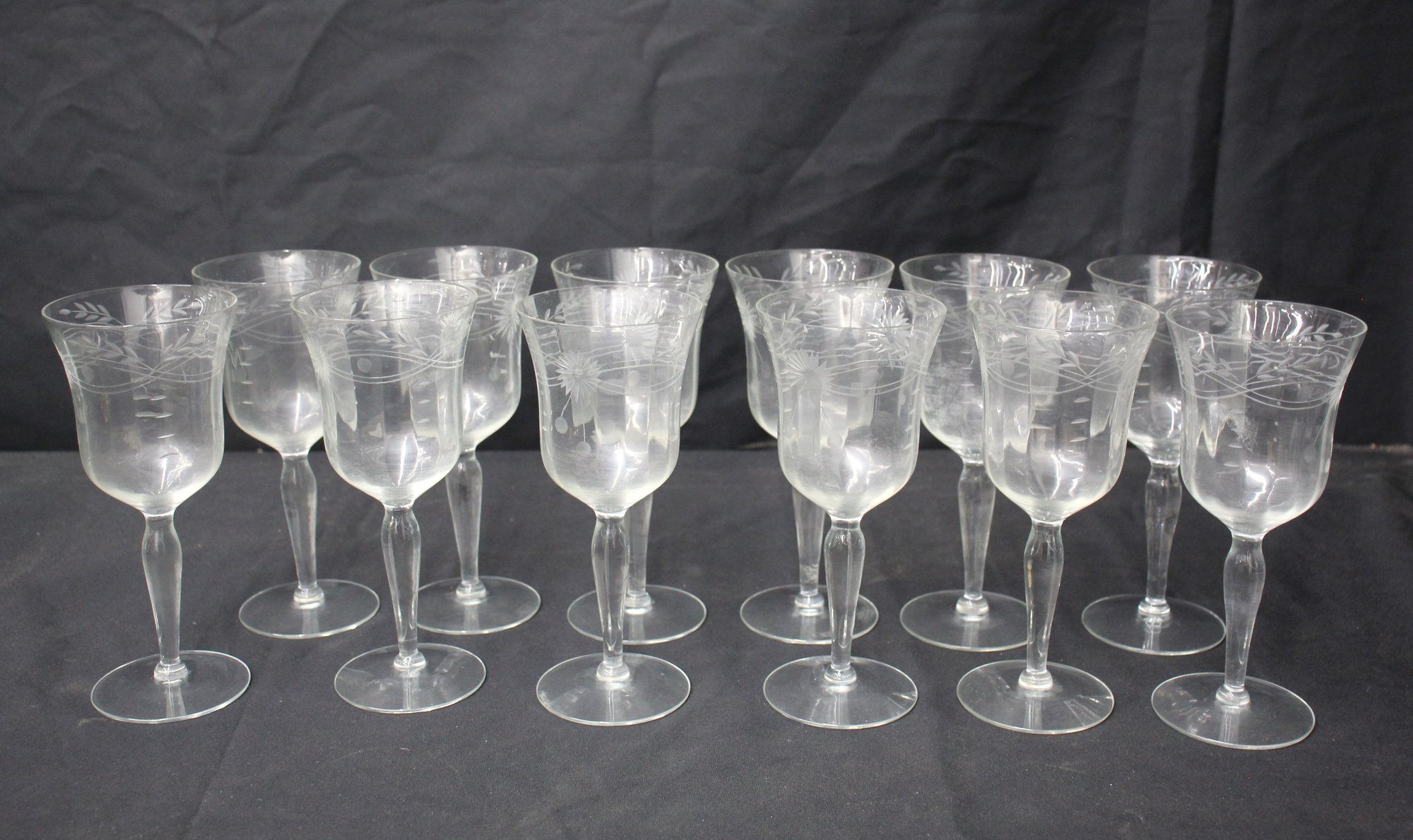 Each glass is a work of art, featuring a delicately etched flower burst design that wraps around the bowl, catching the light and enhancing the sensory pleasure of your favorite wine.