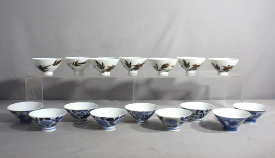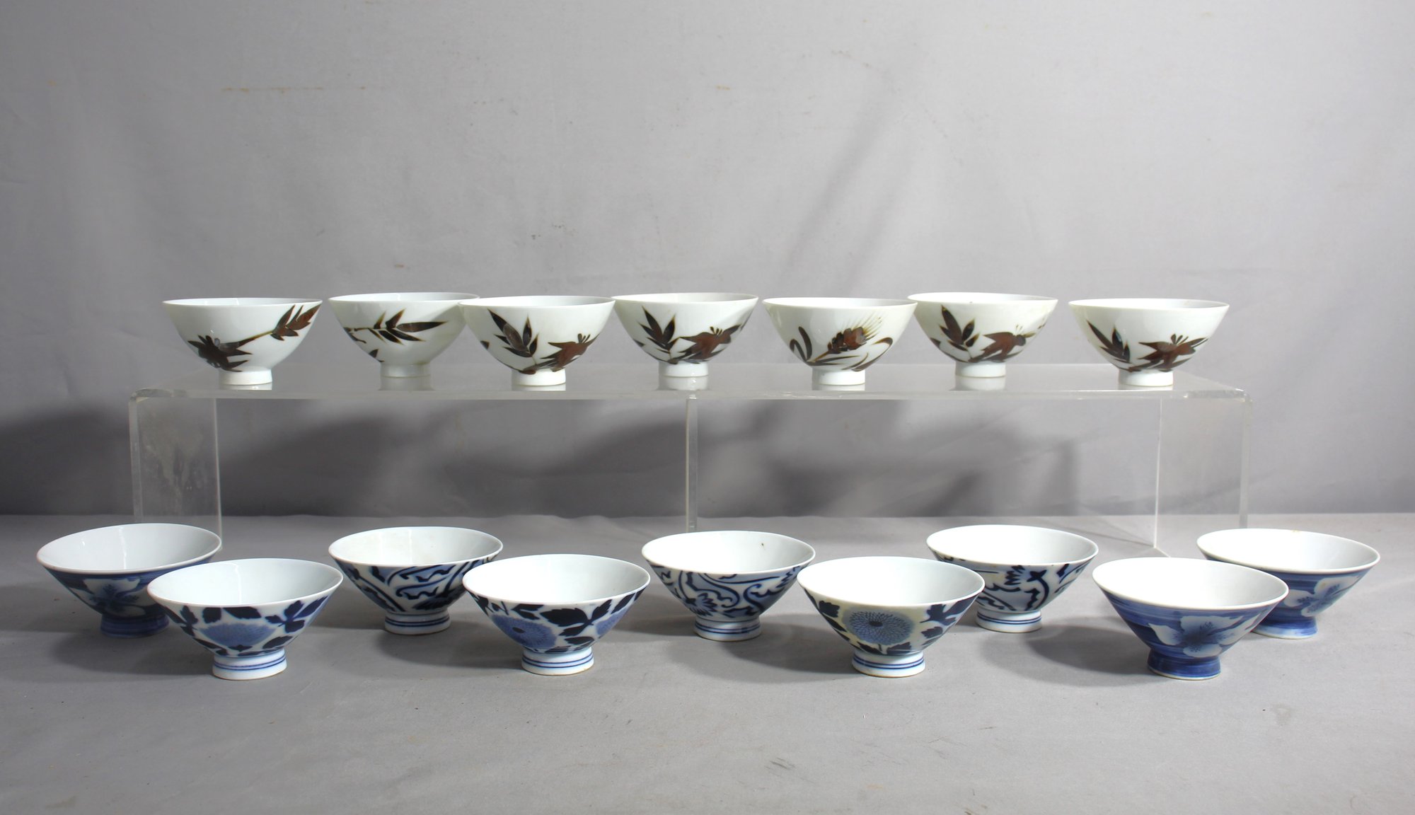 This collection features two/ three distinct designs, with the upper row showcasing a minimalist brown and white foliage motif, while the lower row presents a classic blue and white floral pattern, reminiscent of the iconic blue porcelain styles.