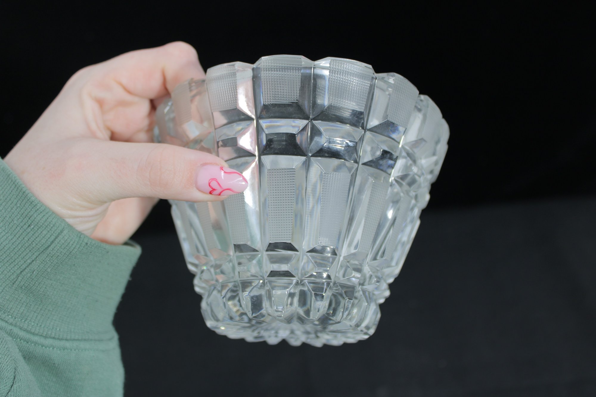 Both bowls feature detailed faceted cuts along the sides and base, giving them a timeless, upscale look that pairs well with both vintage and modern décor.