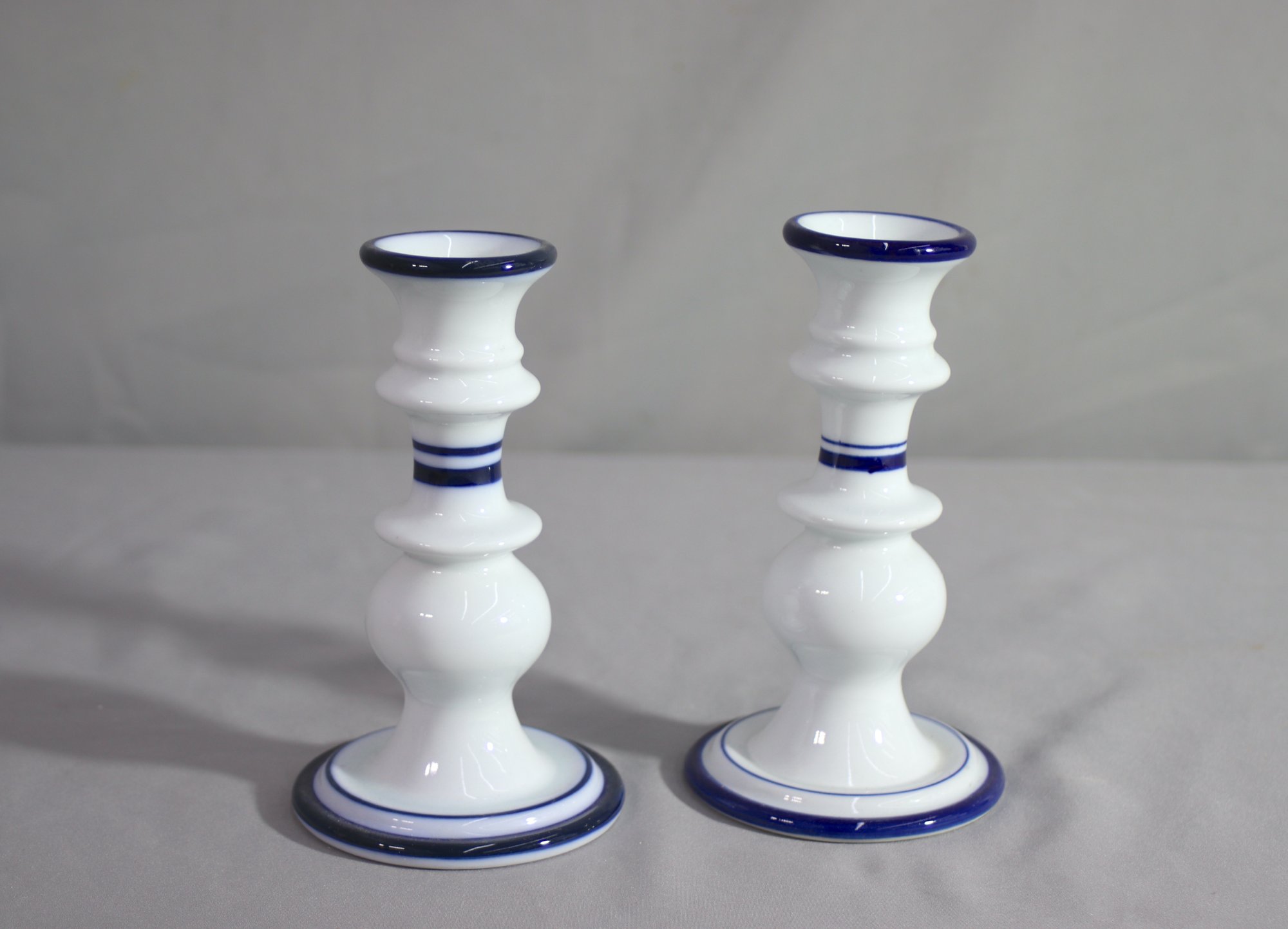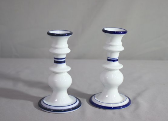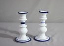 Set Of 2 Dansk Bistro Christianshavn Cobalt Blue & White Taper Candlesticks