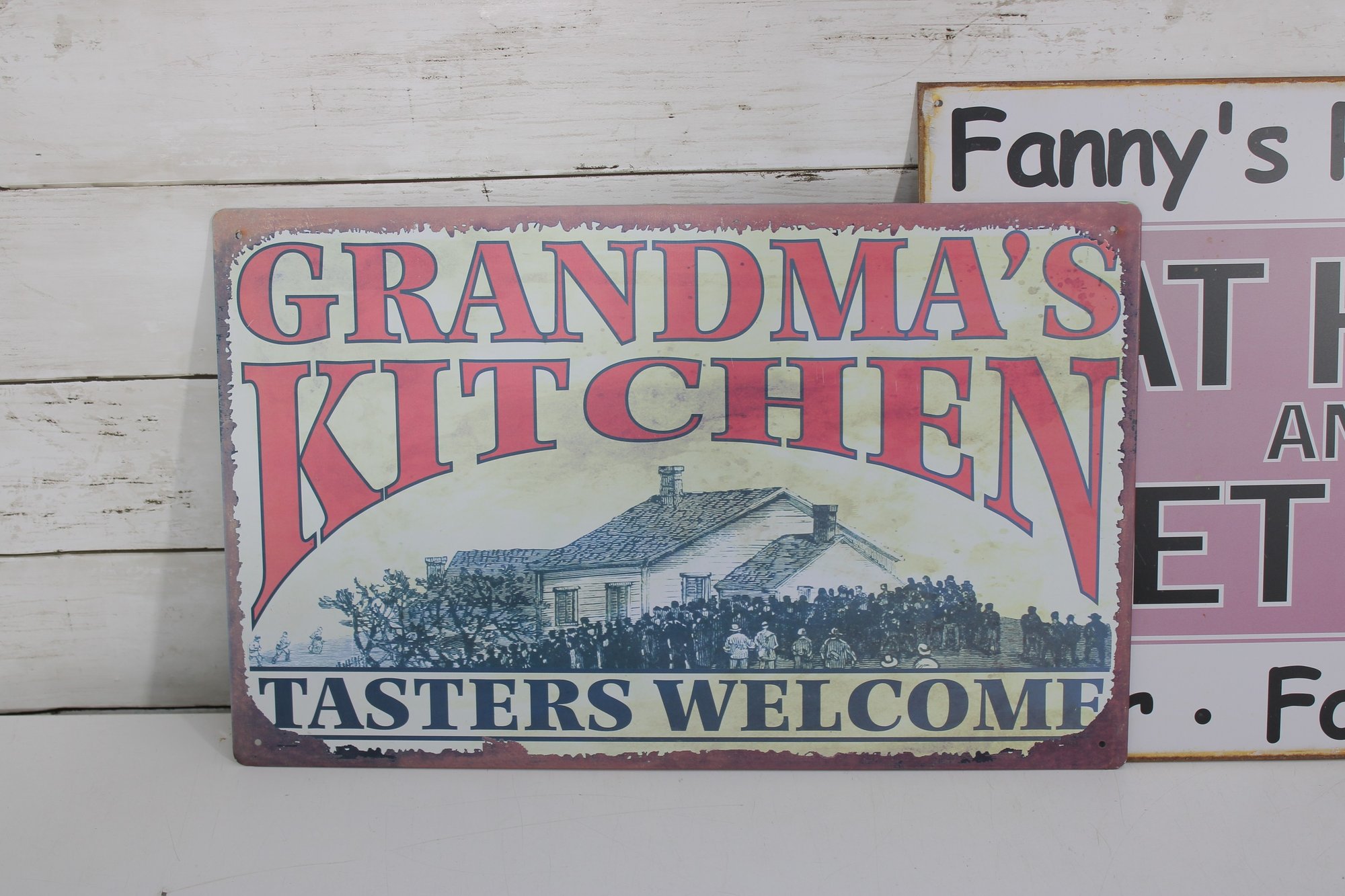 “Grandma’s Kitchen – Tasters Welcome” – Measures approximately 10" x 16" and showcases a farmhouse scene with warm, rustic appeal.