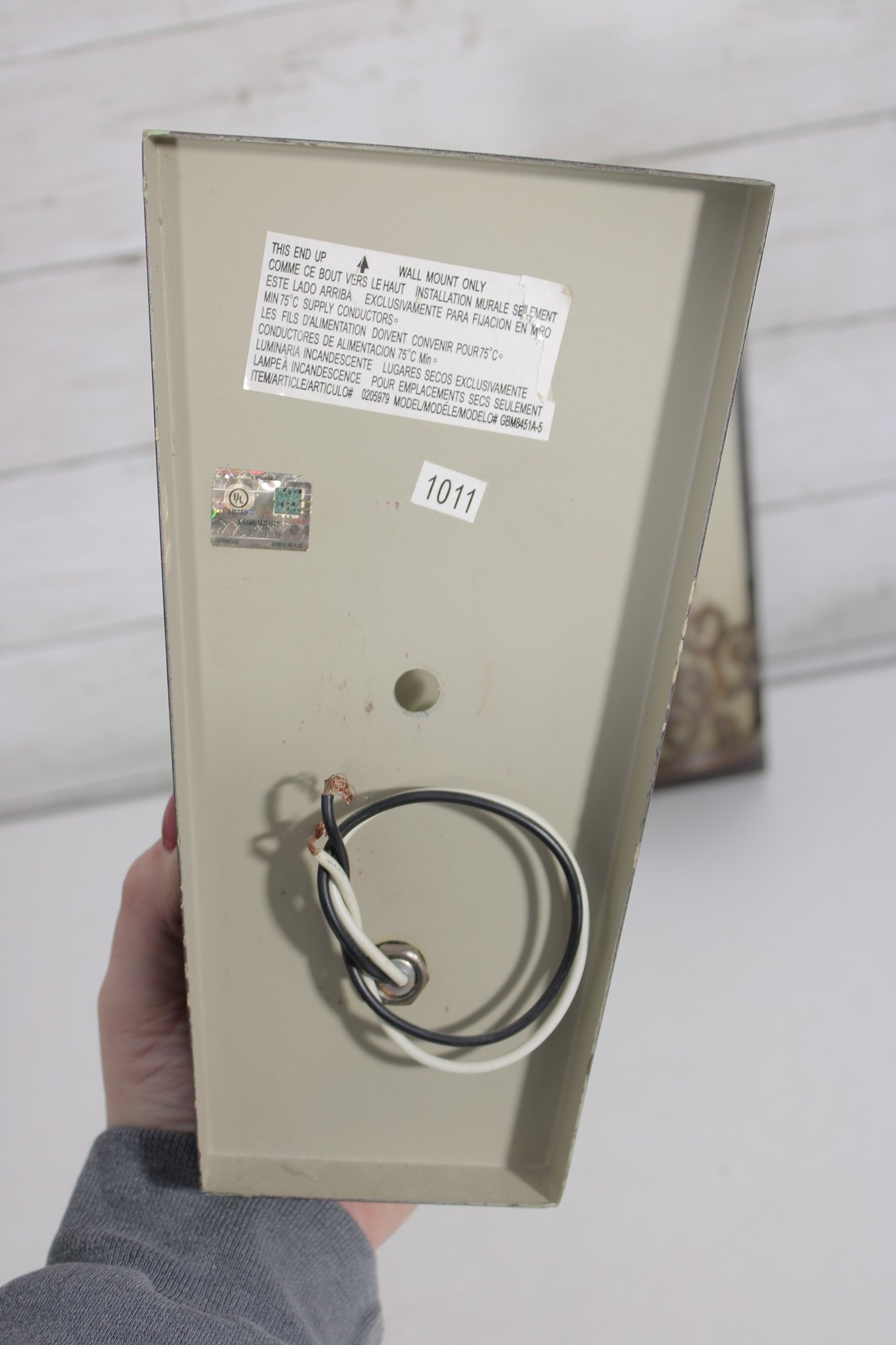 The sconces include mounting hardware and back plates (wiring visible on back; bulbs not included).