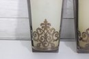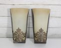 Each fixture measures approximately 9.5 inches high by 5.5 inches wide and is designed for wall mounting. The glass diffuses light beautifully, creating a soft ambient glow ideal for hallways, bedrooms, or living spaces.