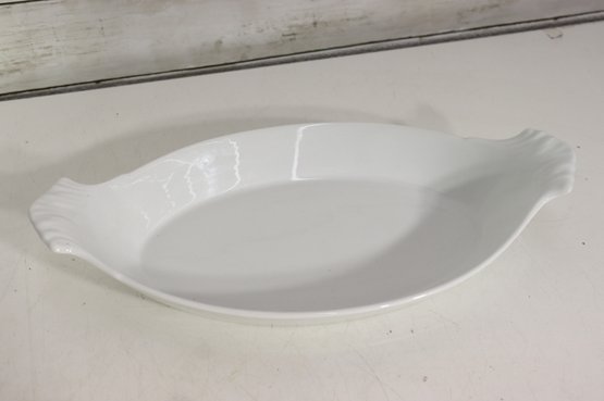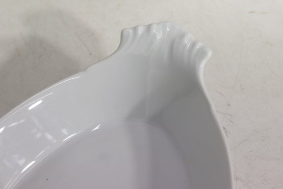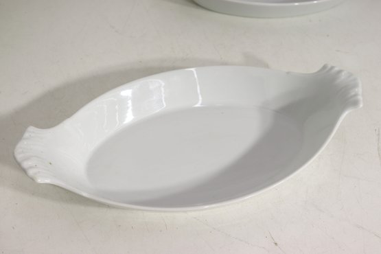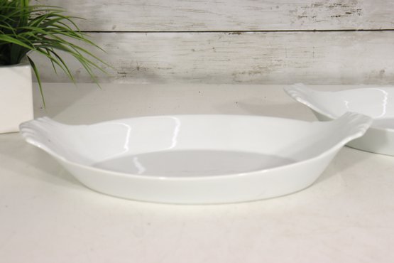 Crafted from durable white porcelain, these dishes feature softly scalloped handles for easy carrying and a smooth glossy finish that complements any table setting — from everyday meals to special gatherings. Their clean, minimalist design makes them perfect for both oven-to-table presentation and display.