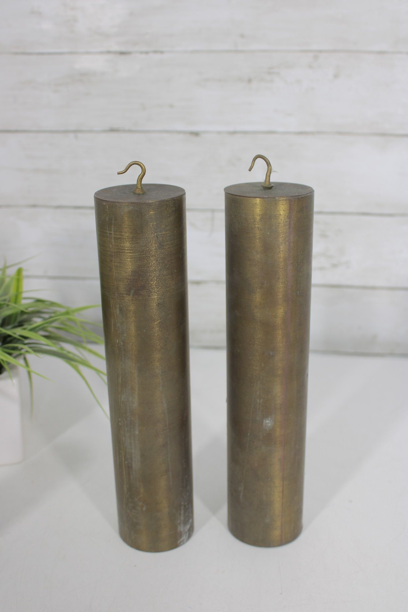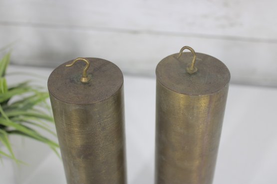Set Of 3 Brass Clock Weights 2 Tall 10" & 1 Small 6" Grandfather Wall Clock Parts