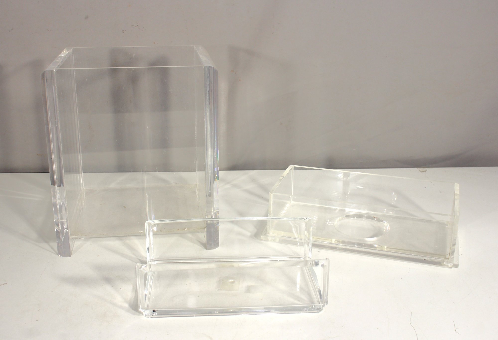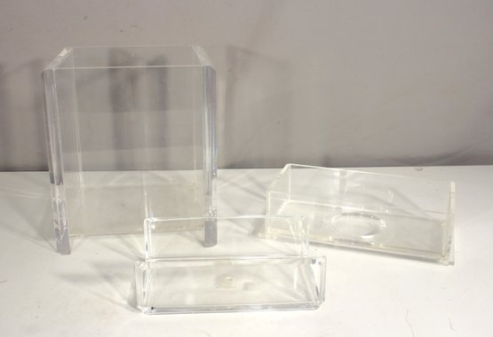 Set Of 3 Clear Acrylic Display Stands & Boxes Modern Storage Or Retail Display