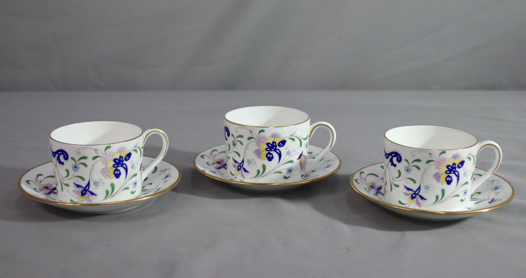 Set Of 3 Coalport China Cup And Saucers , Pegeant Pattern England
