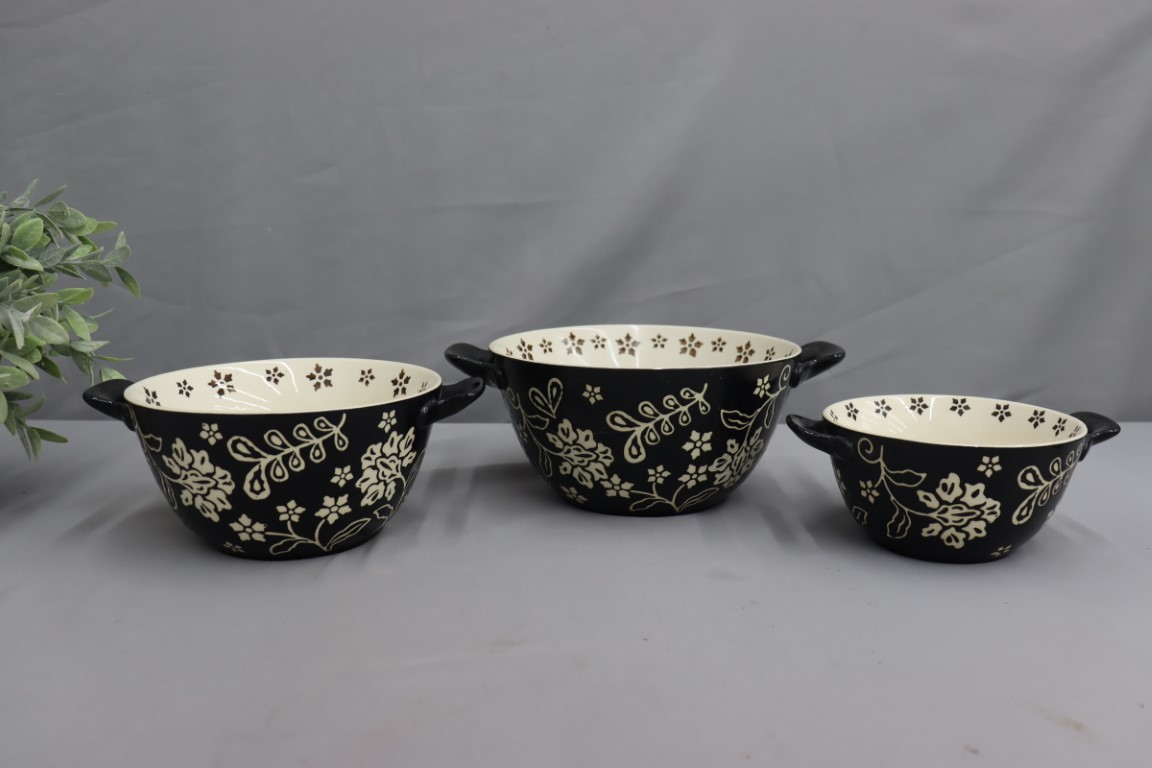 Set Of 3 Cook's Essentials Santa Rosa Nesting Stoneware Bowls