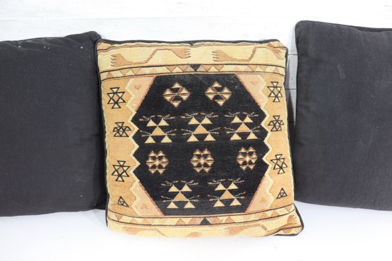 Each pillow measures approximately 17” x 17” and features a patterned front with a solid black fabric back, making them easy to mix and coordinate with other accent pillows.