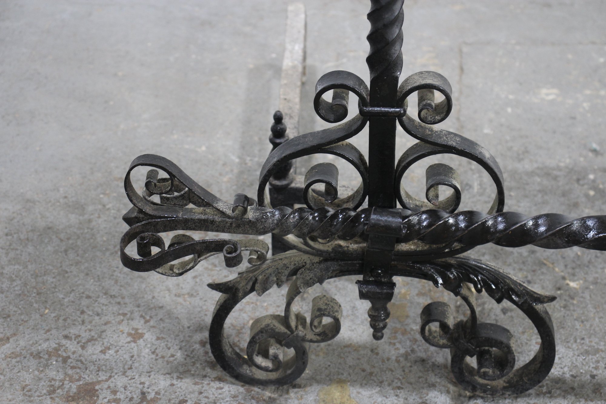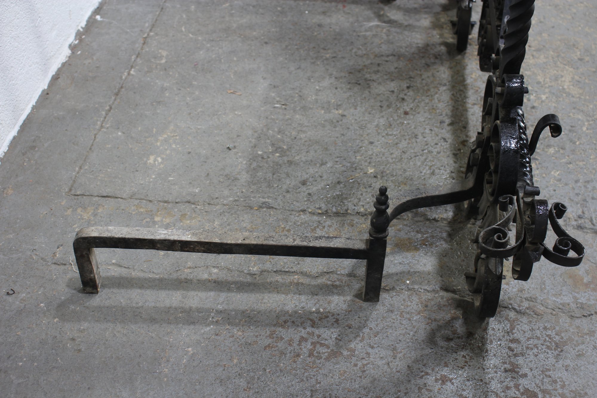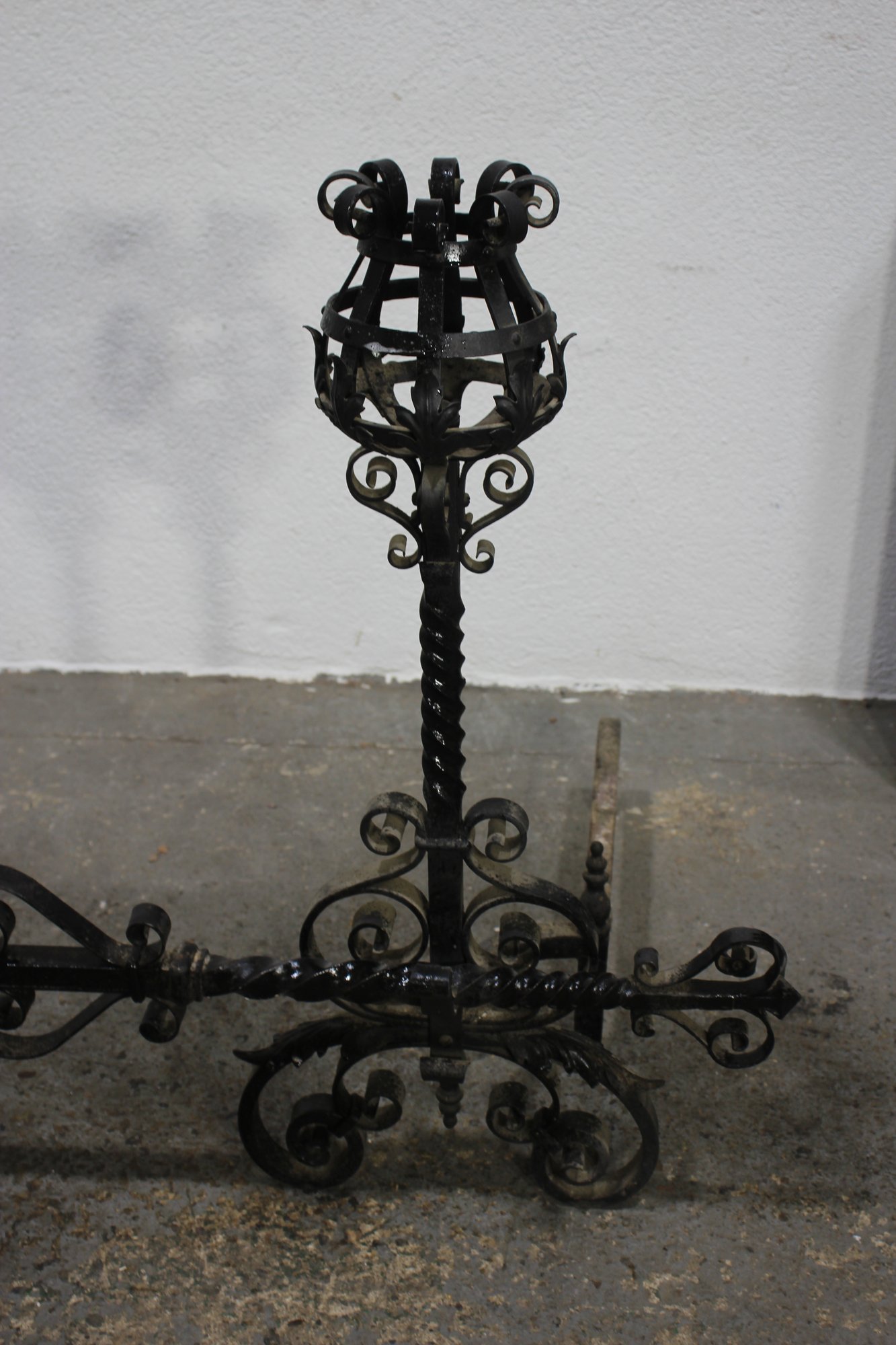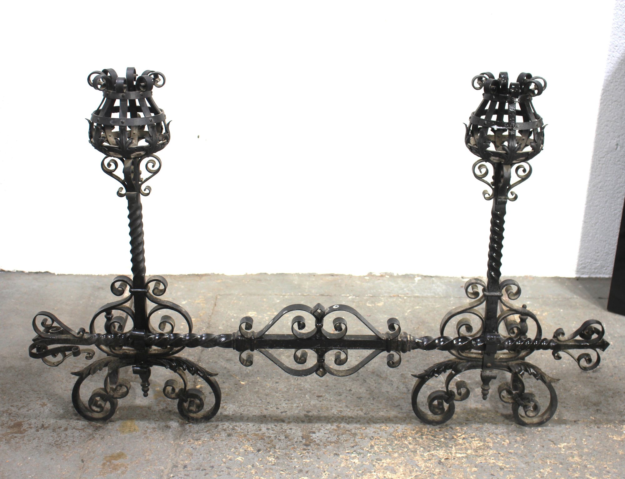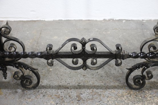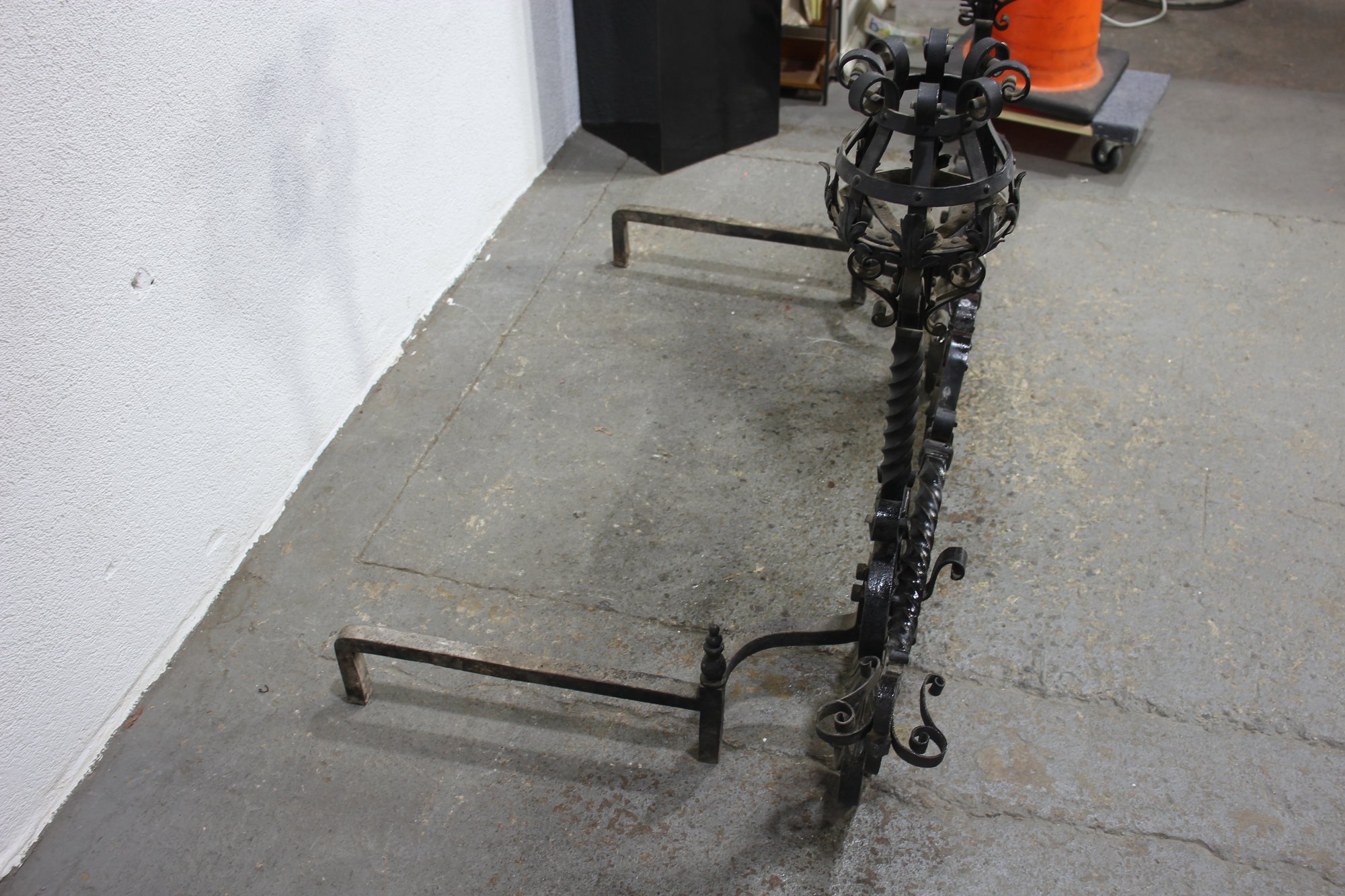 This beautiful set of 3 wrought iron fireplace accessories includes a pair of ornate andirons and a coordinating fender, combining elegance and functionality. Each piece is crafted with intricate scrollwork and twisted detailing, adding a timeless charm to your fireplace setup. The sturdy iron construction ensures durability, while the decorative design enhances your home's aesthetic.