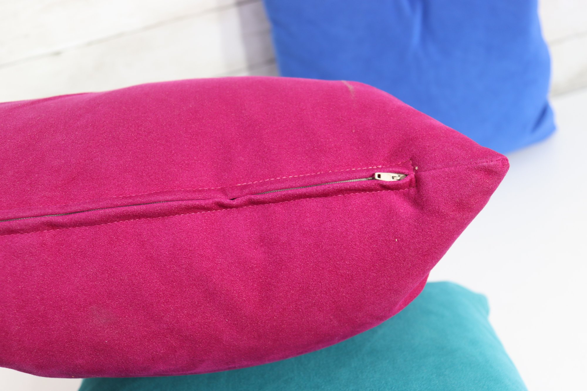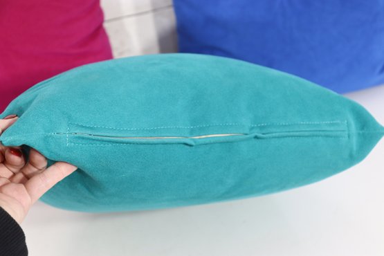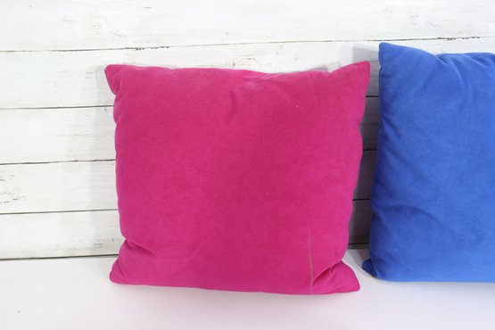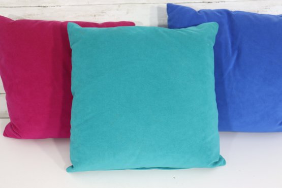 Set Of 3 Solid Color Throw Pillows Teal, Magenta & Royal Blue 15" X 15"
