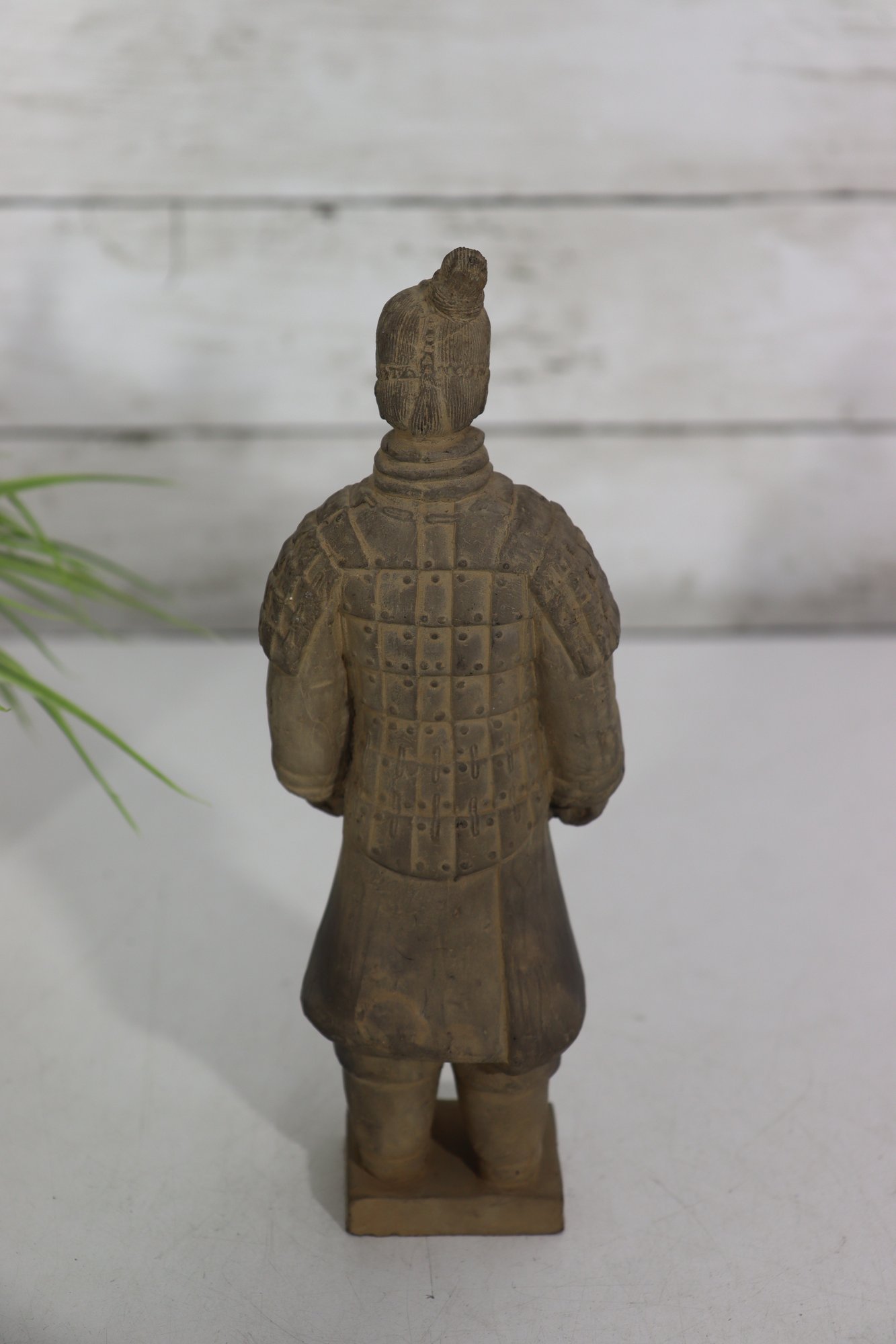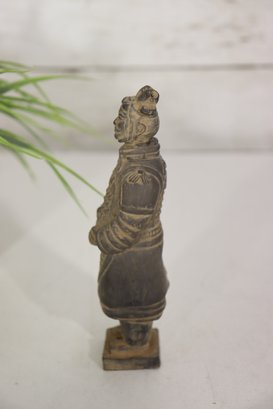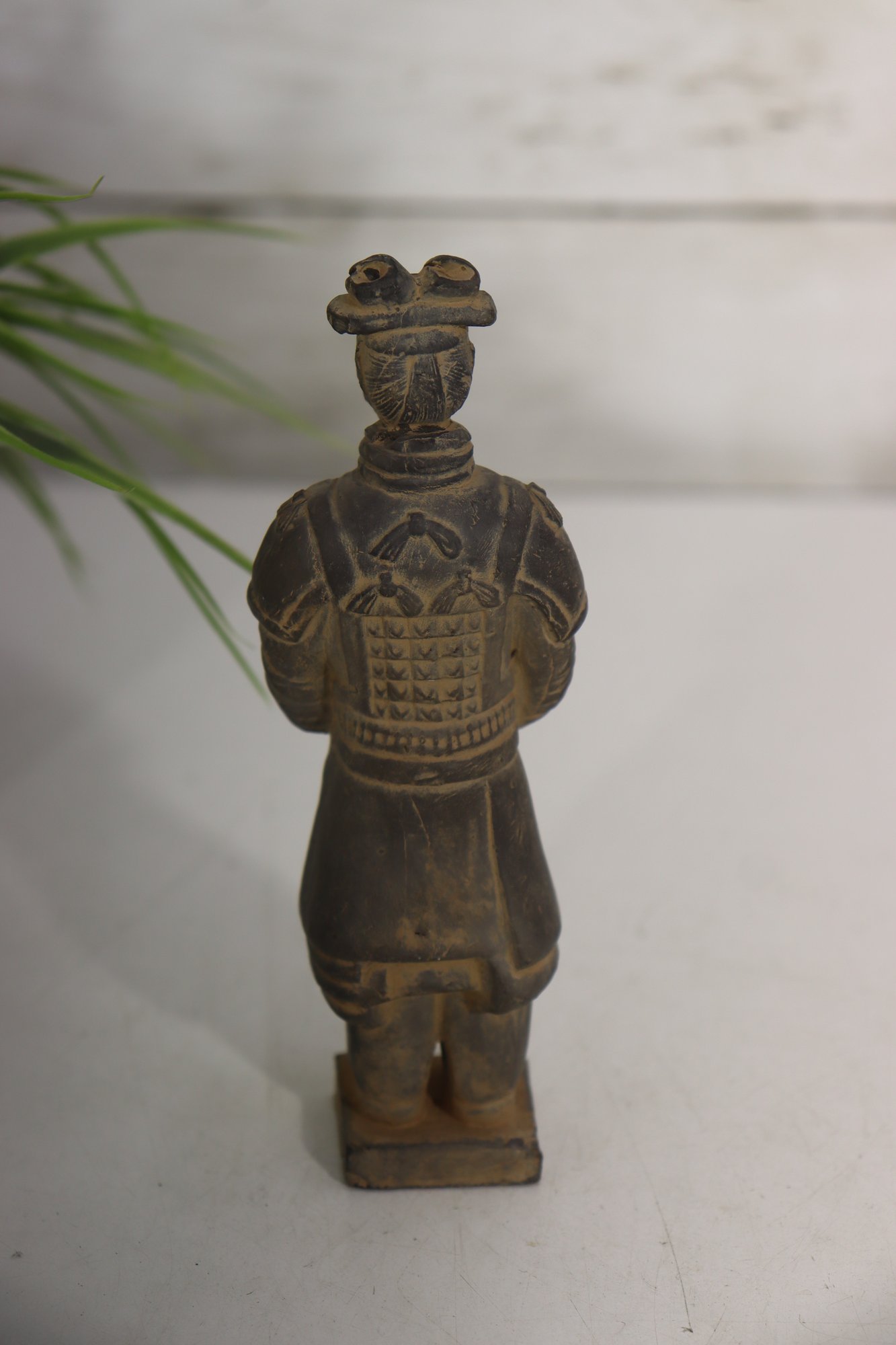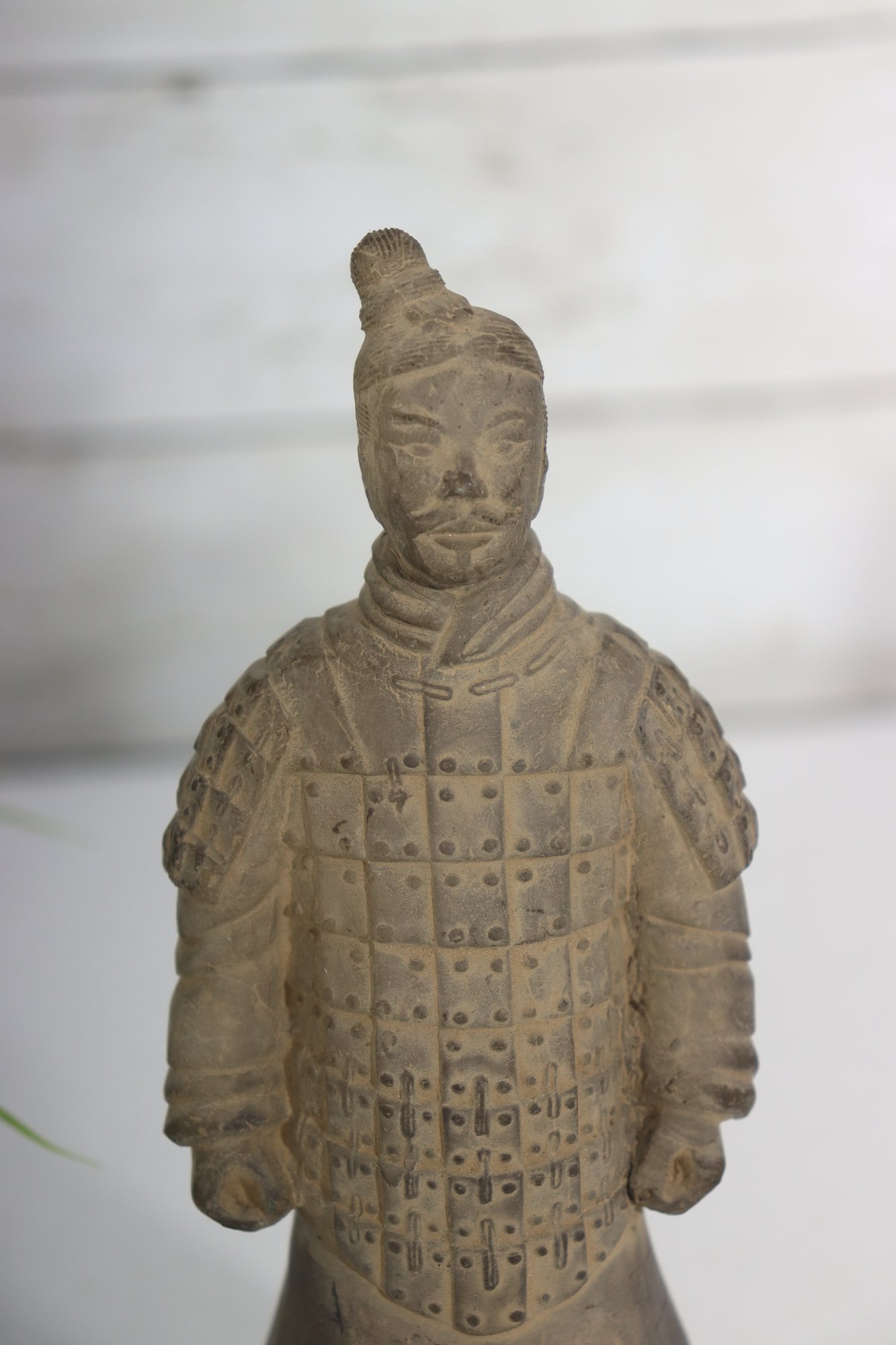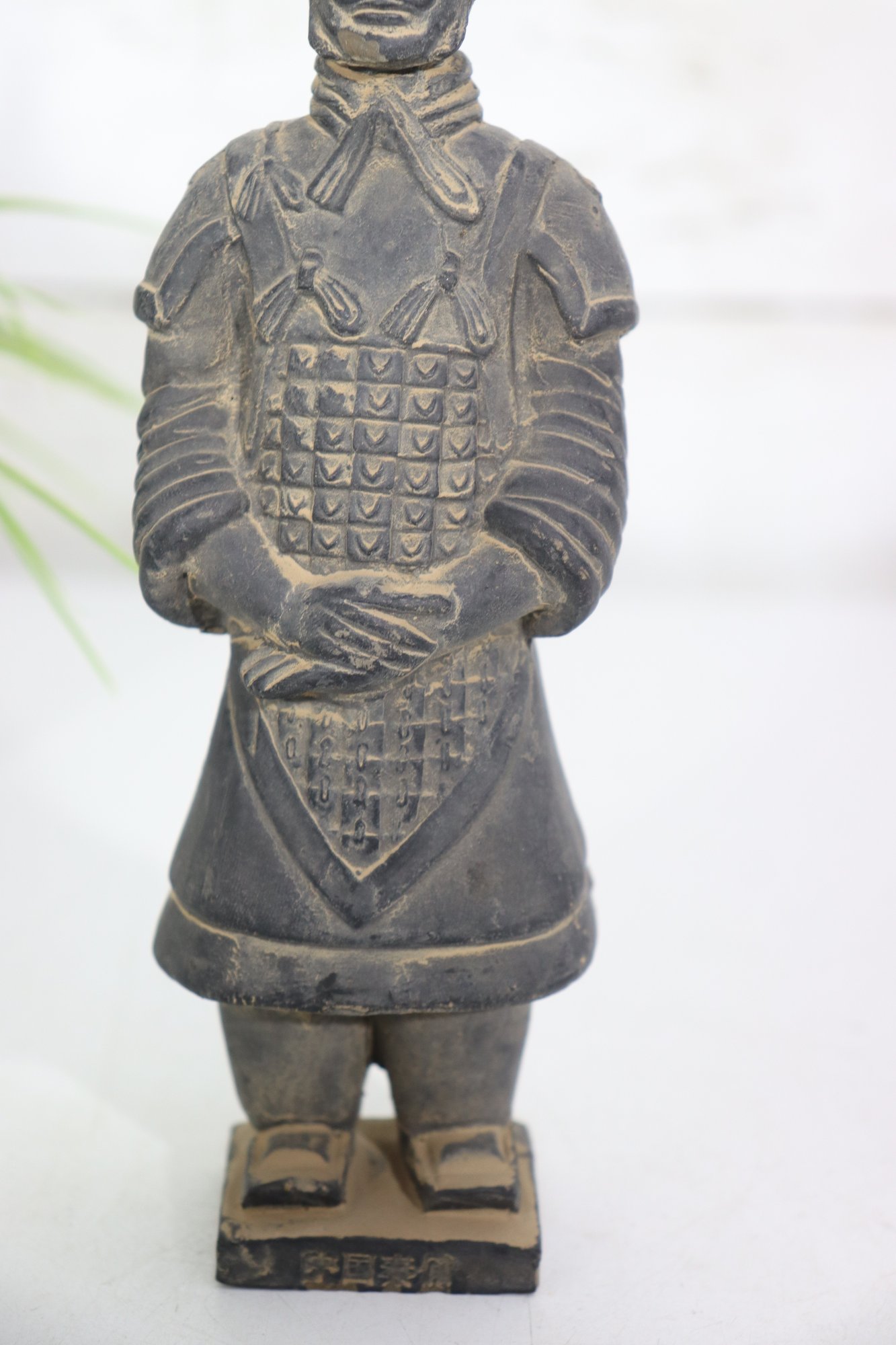 set of three terracotta warrior replica figurines, modeled after the famous Qin Dynasty Terracotta Army discovered in Xi’an, China. Each warrior is uniquely sculpted with traditional armor, hairstyles, and stance details that reflect the historic life-size originals.