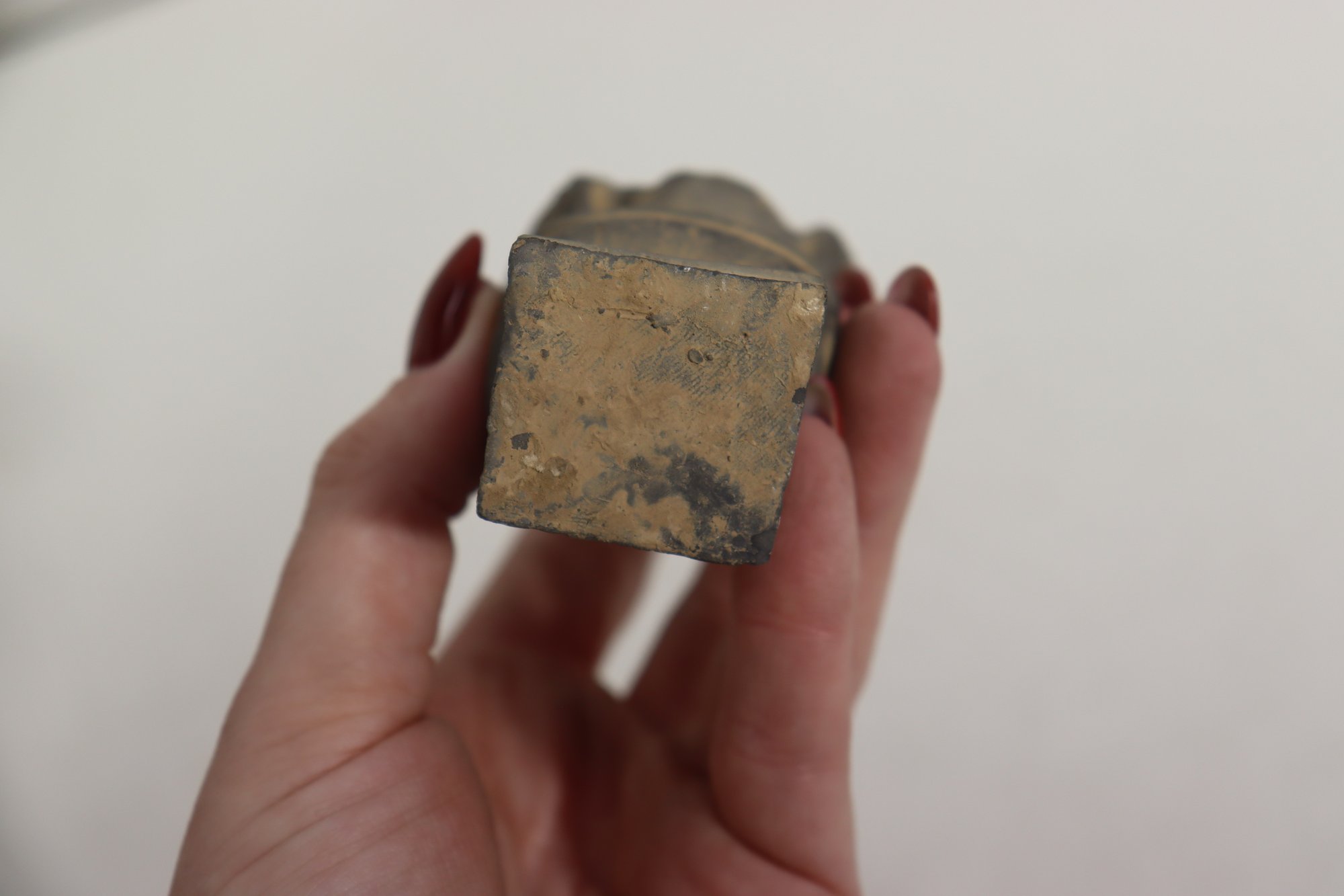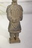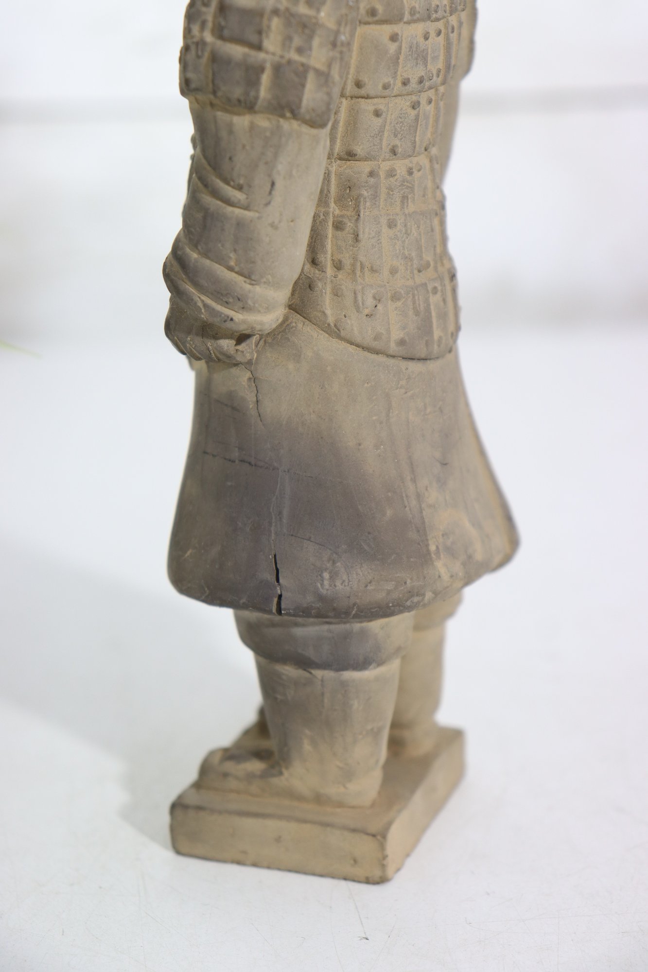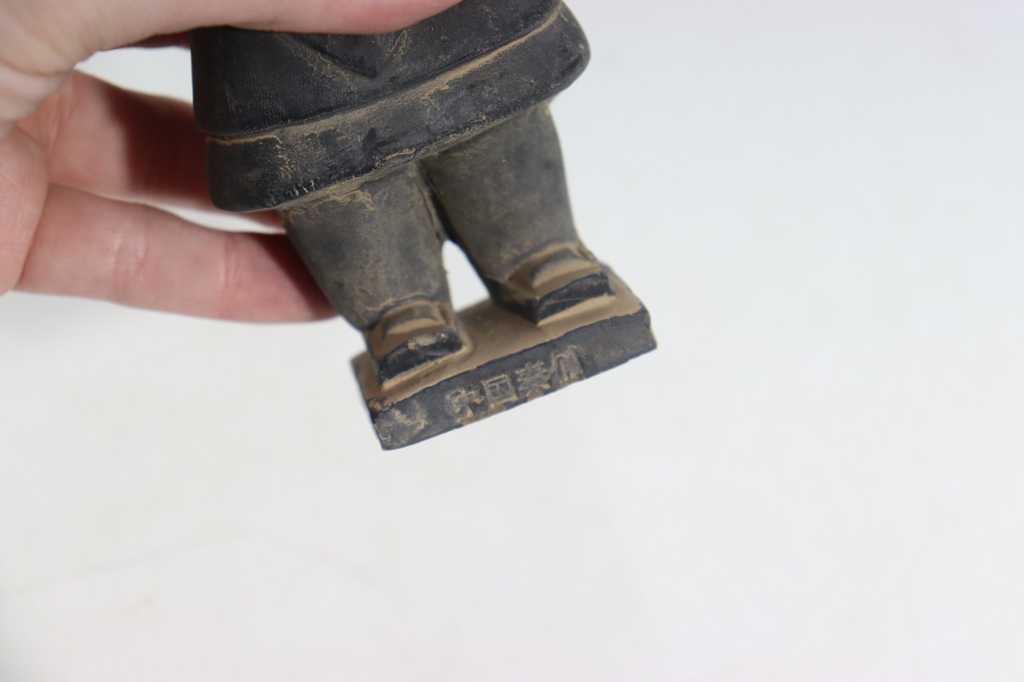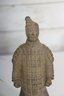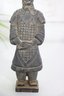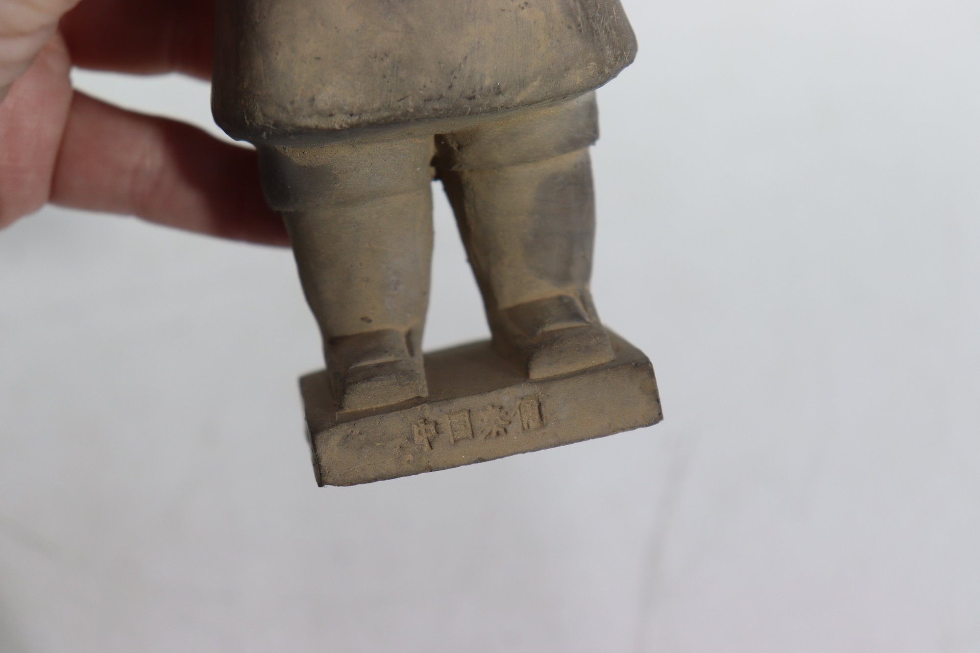 These replicas appear to be crafted from terracotta or ceramic material and feature impressed Chinese characters on the bases of two figures, further enhancing their cultural authenticity.