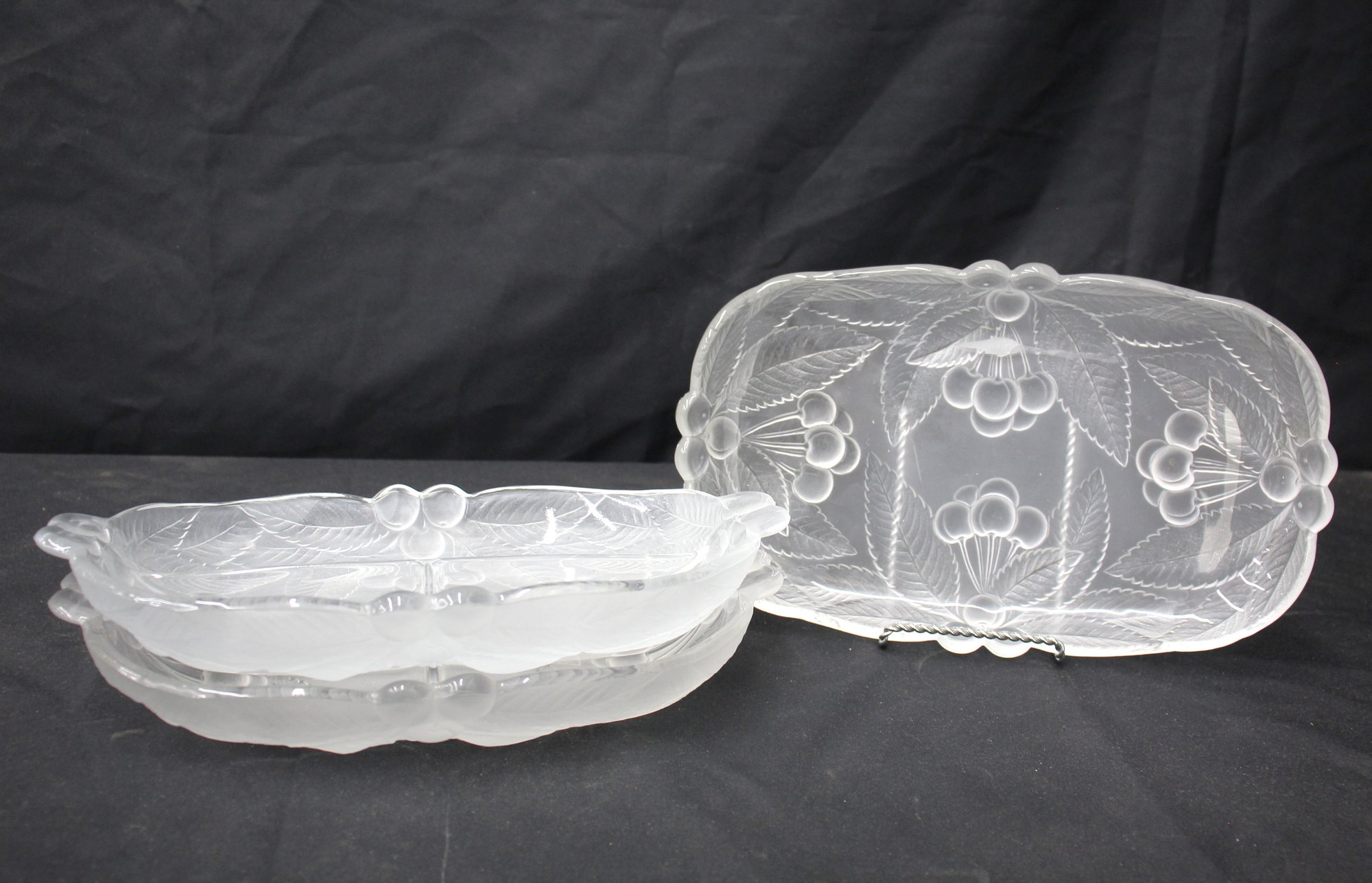Set Of 3 Vintage Frosted Glass Fruit Bowls With Cherry And Leaf Design