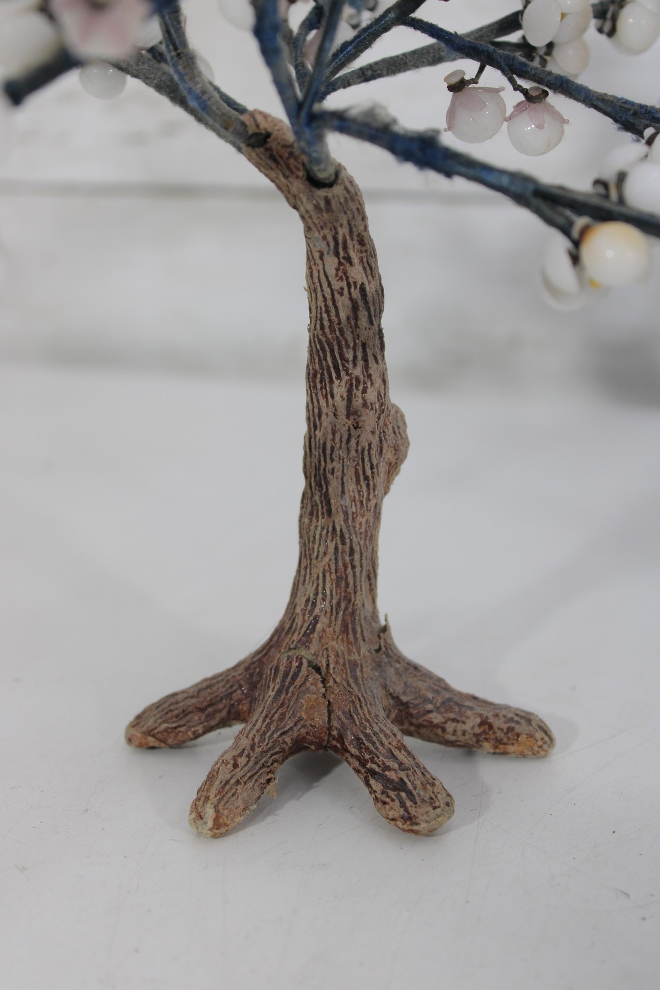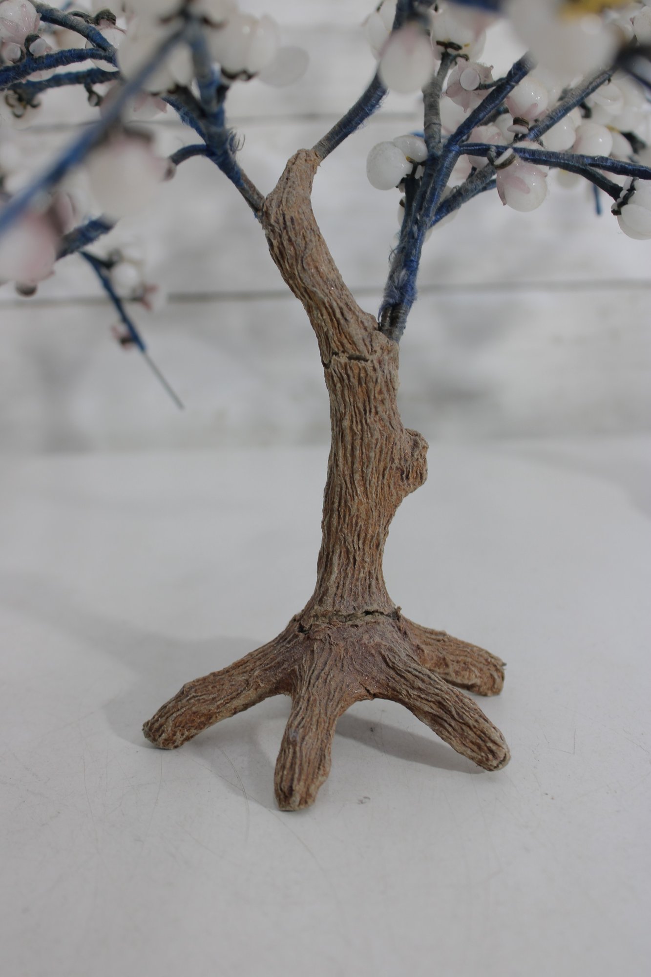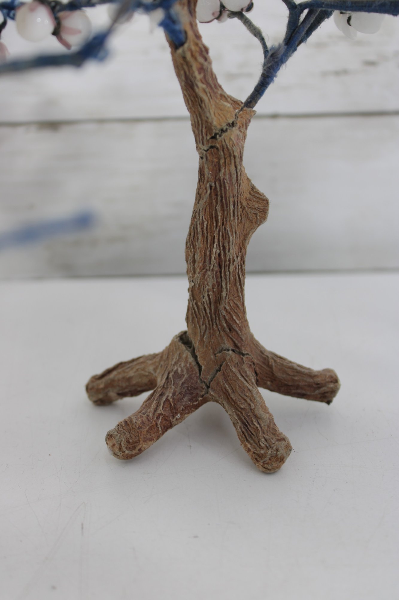 Each tree stands independently on its sculpted base and has a nicely balanced, spreading branch design that gives them an airy, realistic appearance. They look lovely displayed together as a grouping or spaced throughout a room for a cohesive decorative theme.