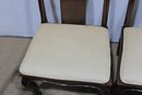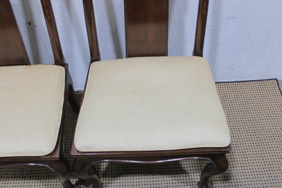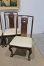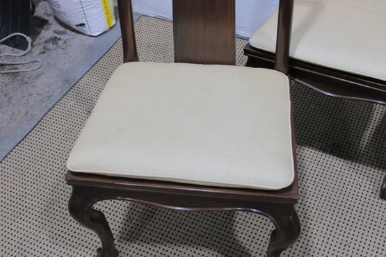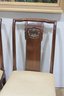 Each chair includes an upholstered cream seat cushion that complements the warm wood tone beautifully. The craftsmanship and detailing reflect Drexel Heritage’s well-known quality and timeless traditional styling.