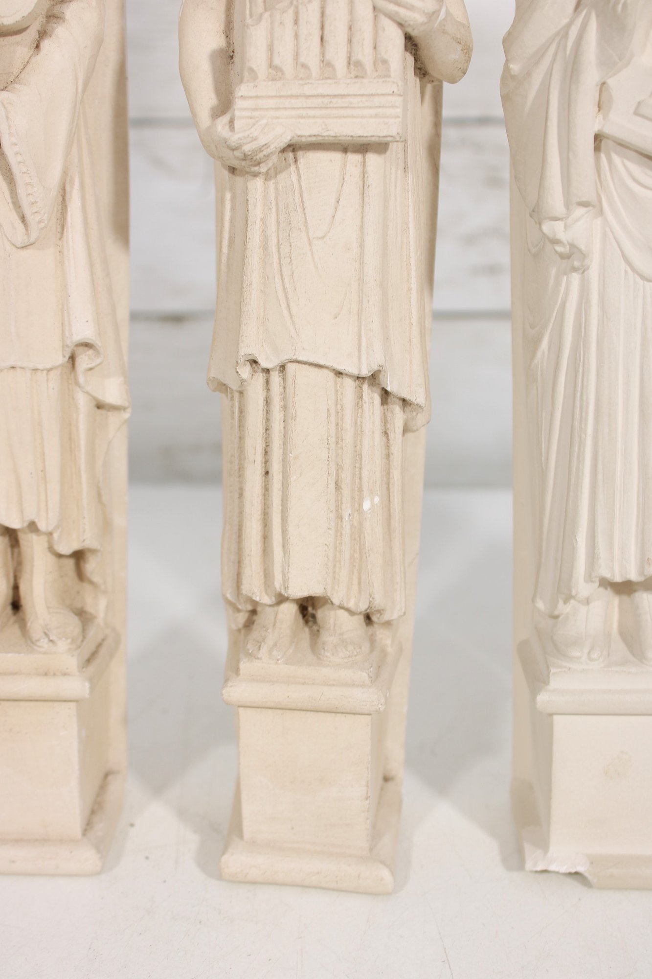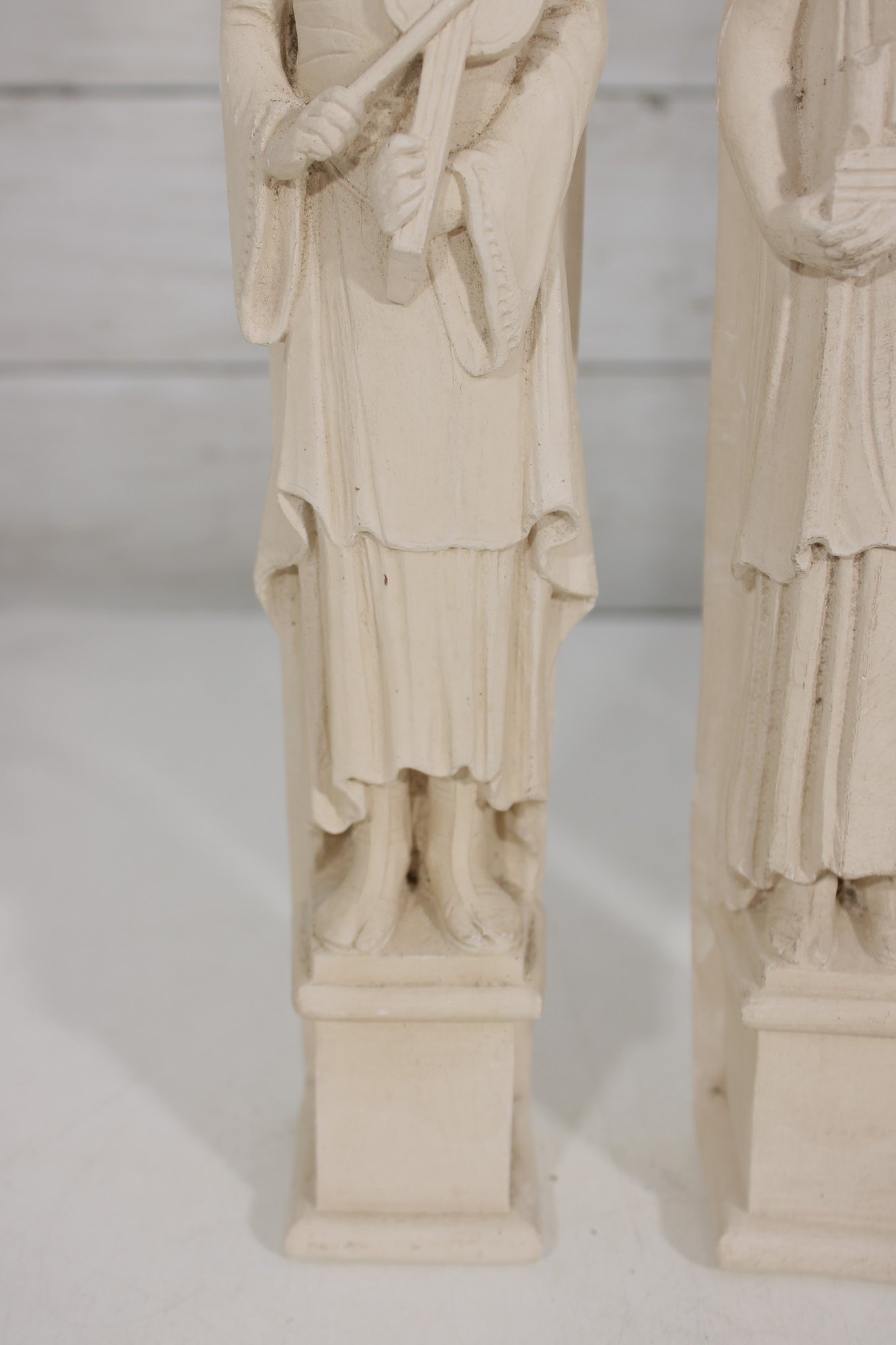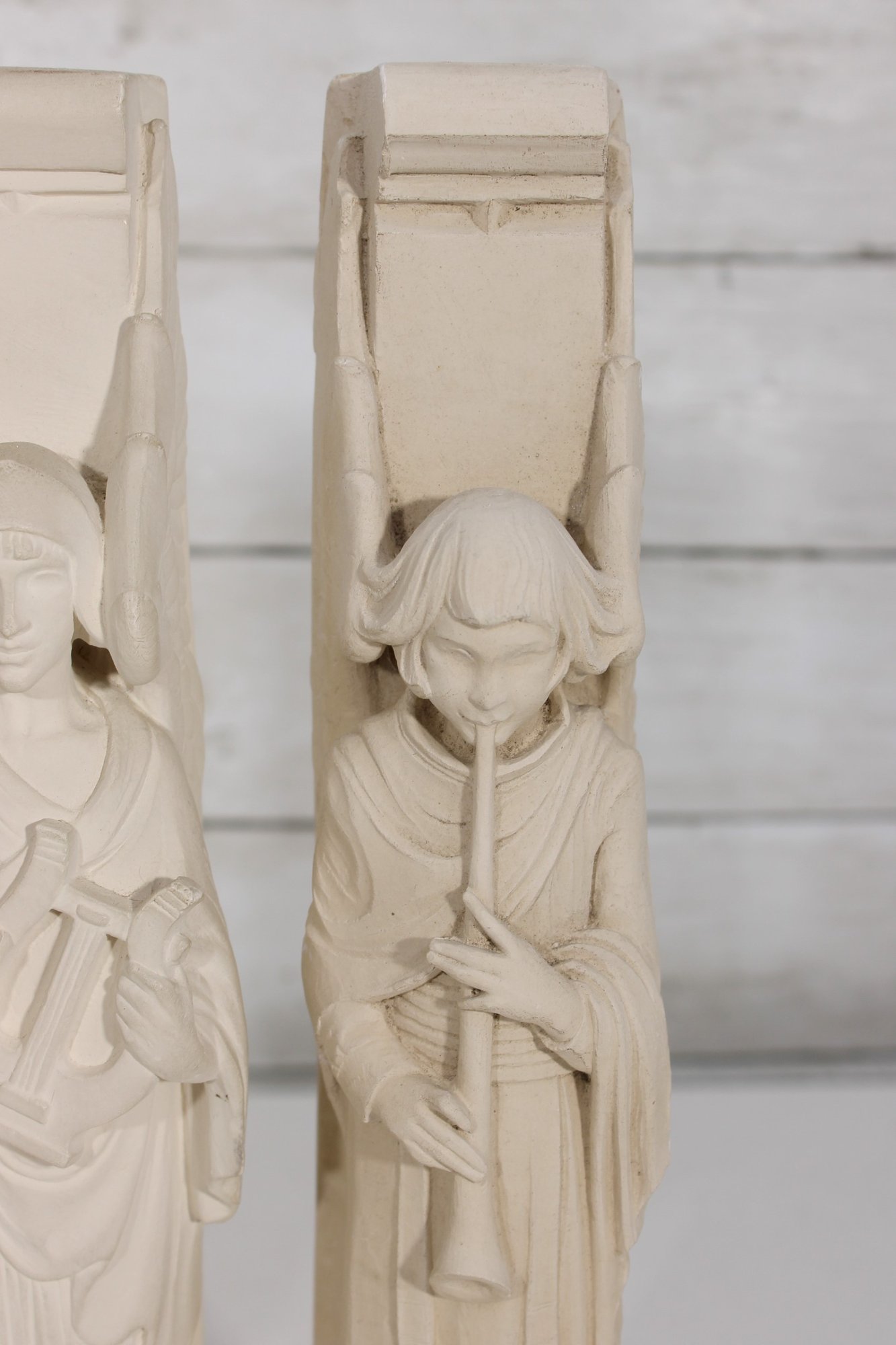 These sculptural wall hangings have a refined, architectural presence, reminiscent of Gothic or ecclesiastical design. The neutral ivory tone allows them to blend seamlessly into a variety of interiors, from traditional to shabby chic or cottage-inspired spaces.