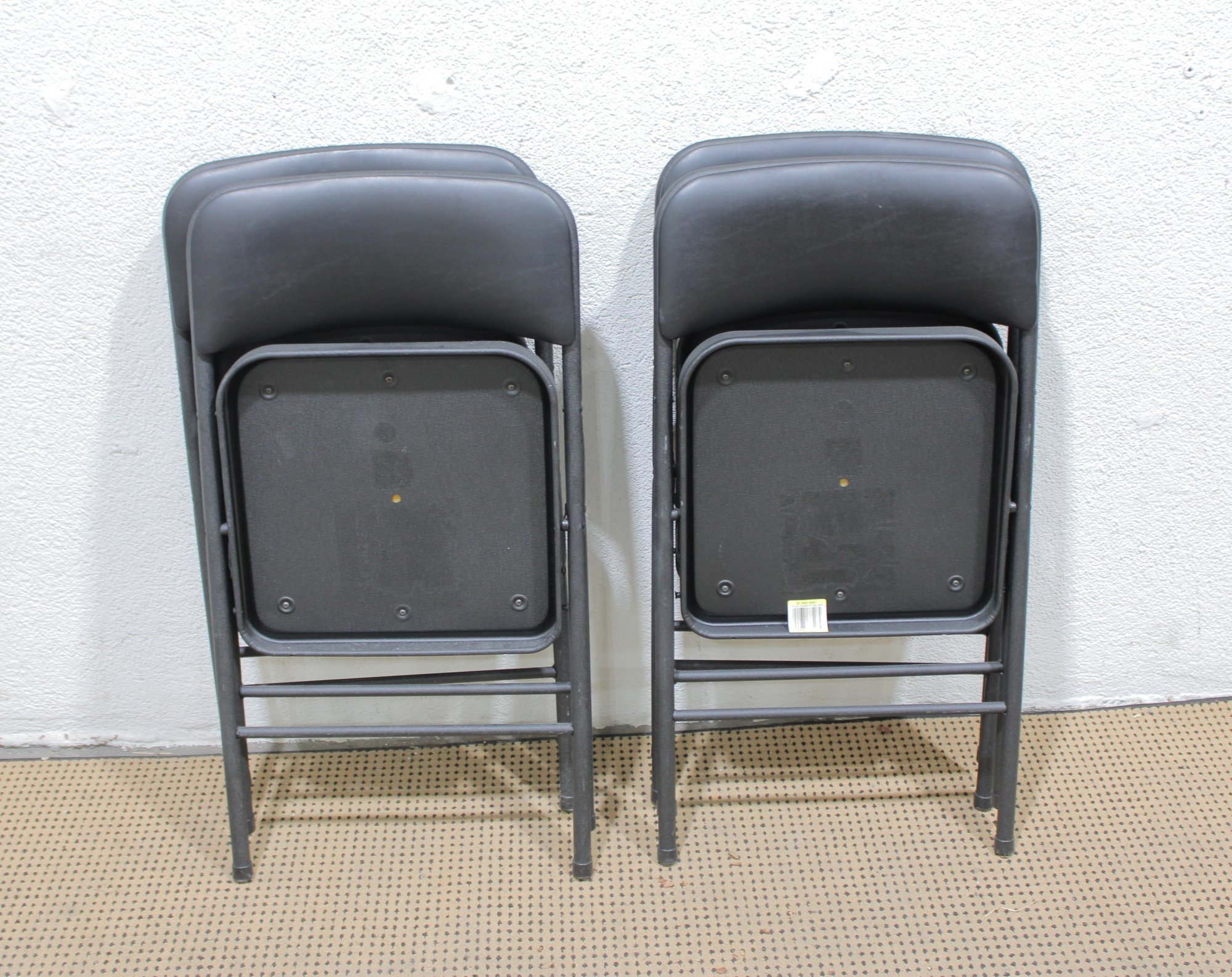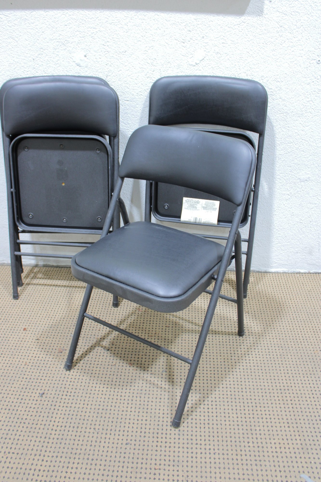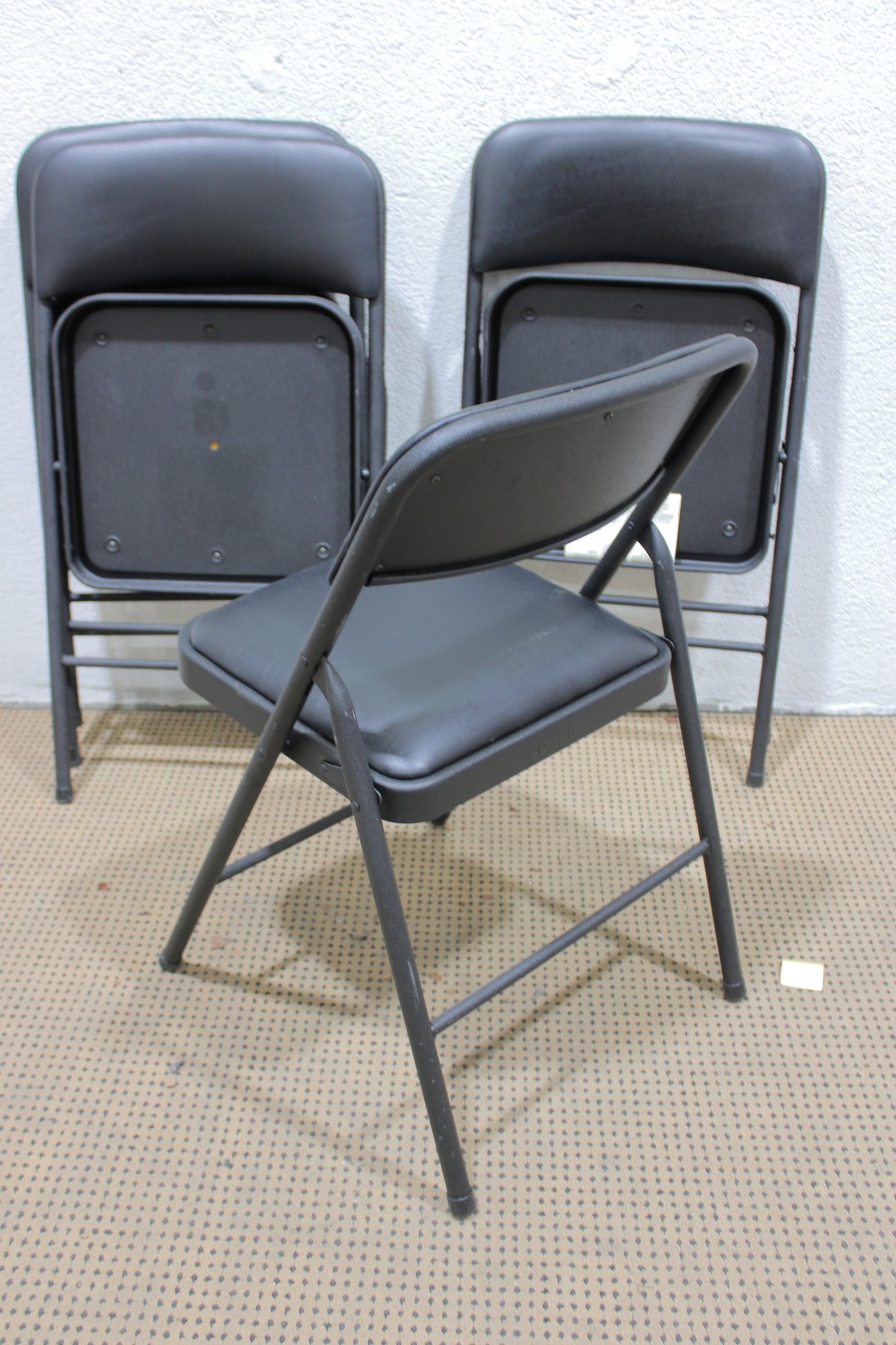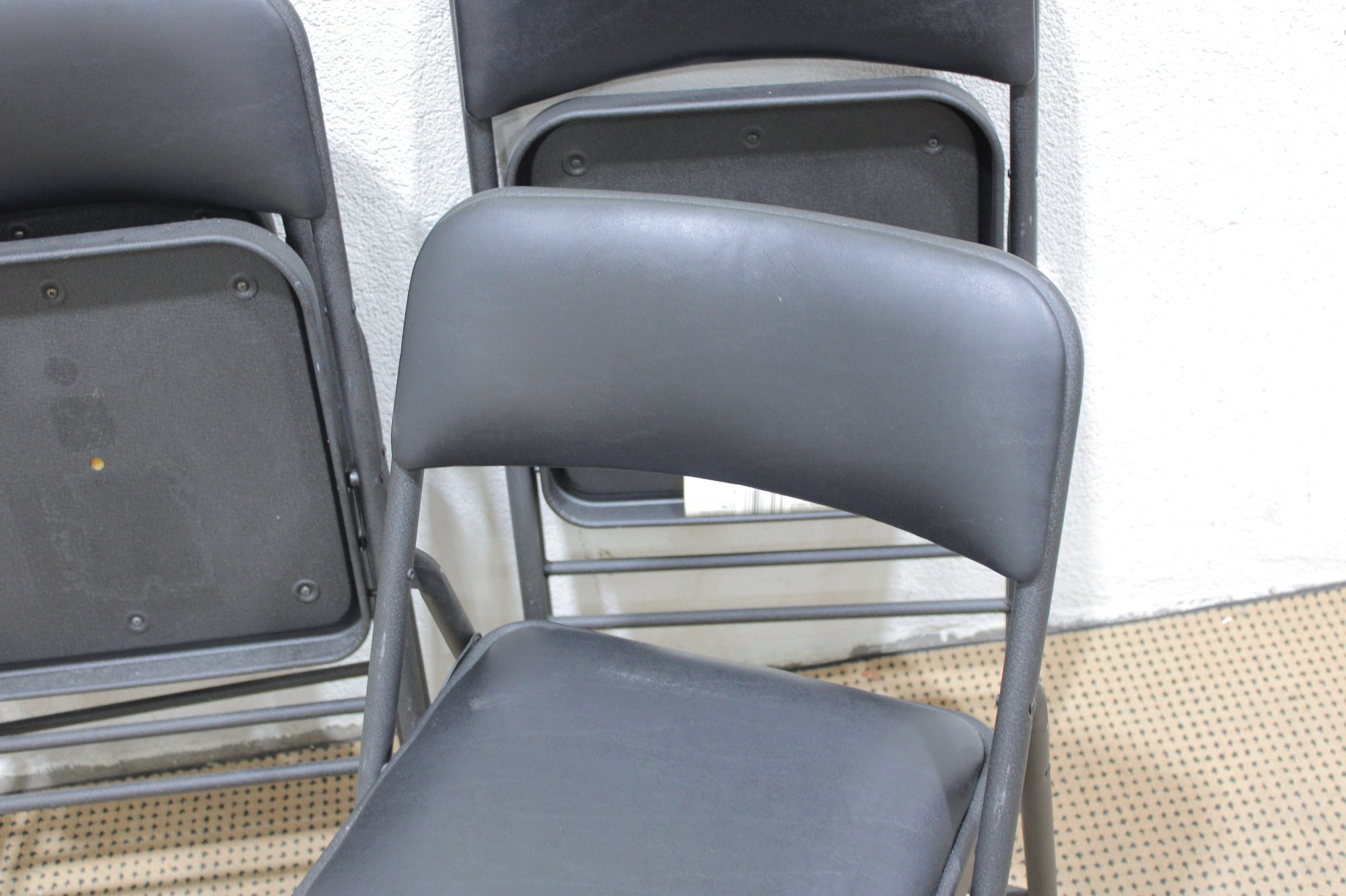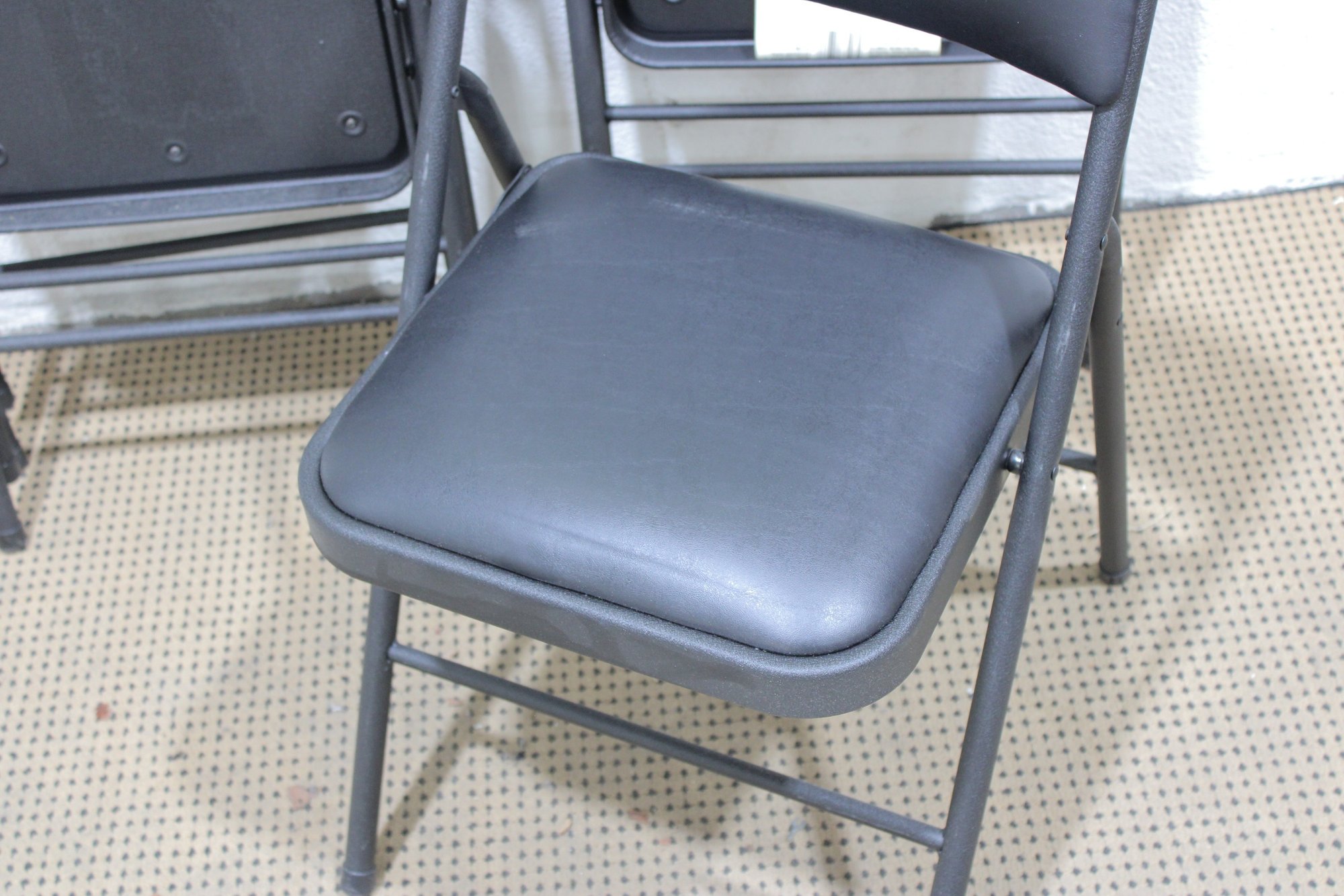 Set Of 4 Padded Folding Chairs Gray Vinyl Seats 29.5H X 16W