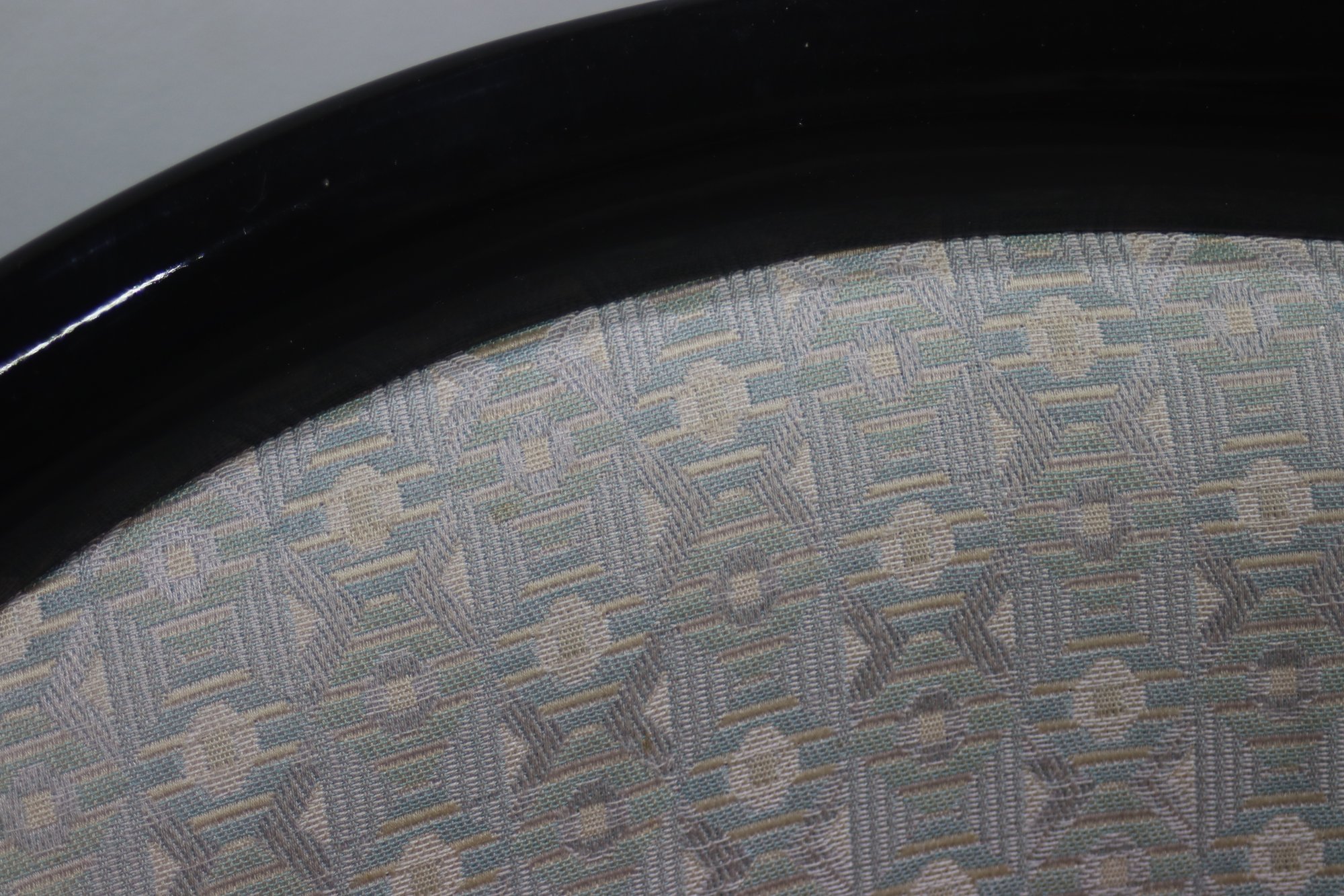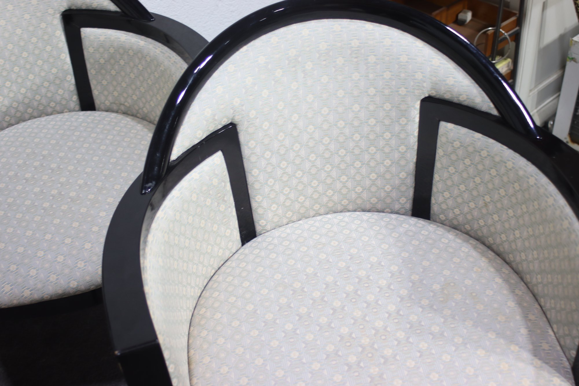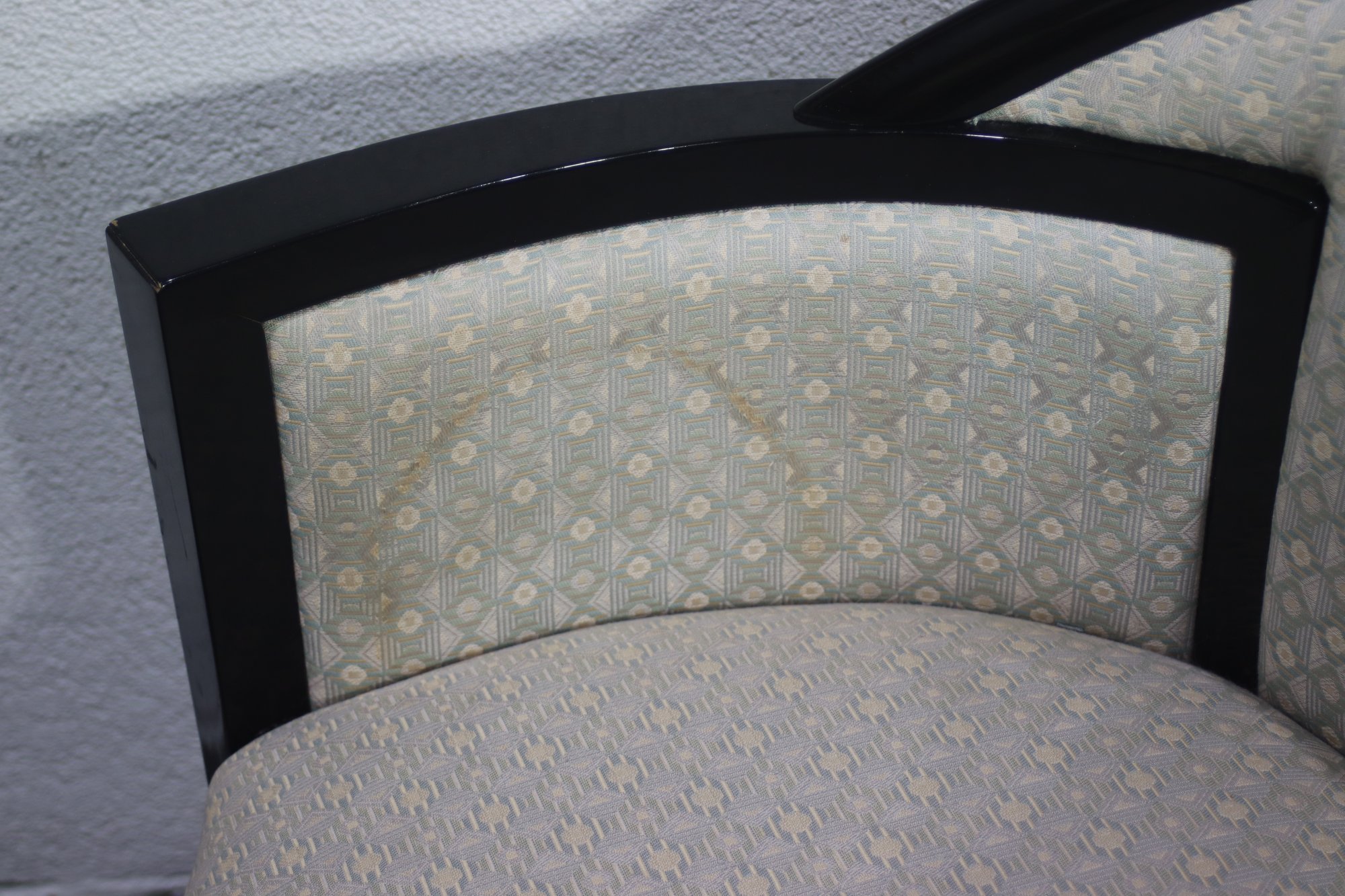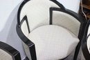 This stunning set of four Roche Bobois armchairs features a bold Art Deco-inspired design with elegant black lacquered frames and geometric-patterned upholstery. Known for their luxury craftsmanship, these chairs blend modern sophistication with classic aesthetics, making them a striking addition to any dining or living space.