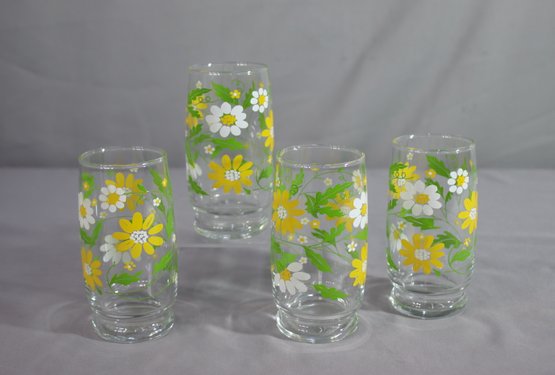 Set Of 4 Vintage Daisy Tumblers