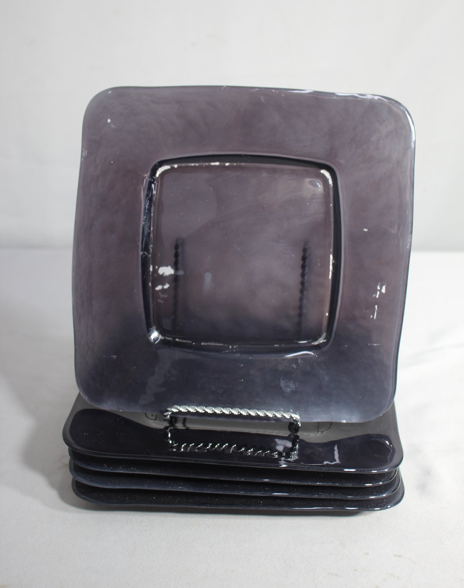 Set Of 4 Vintage Purple Square Glass Plates 8"x 8"