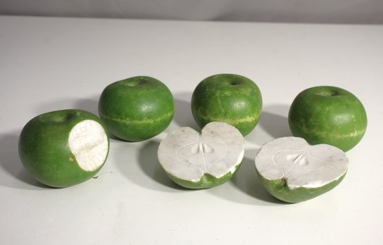 This unique set of five handcrafted stone apples adds a touch of natural charm to any decor. Made from green marble or similar stone, each apple is beautifully polished and features a realistic, carved design with two cut-open halves showing intricate inner details. Perfect as a decorative centerpiece, paperweight, or for adding a rustic aesthetic to your kitchen or display shelf. These stone apples offer a lifelike appearance with a heavy, quality feel.