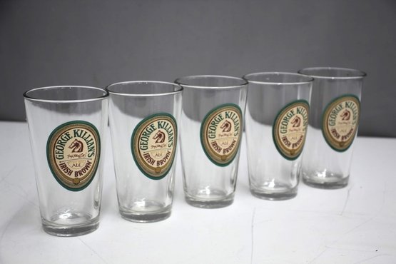 Set Of 5 George Killian's Irish Brown Ale Clear Pint Beer Glass