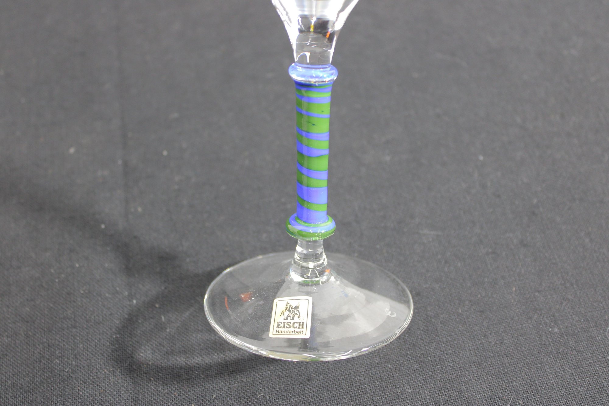 Expertly handcrafted, these German art glass pieces showcase Eisch’s renowned quality and design. Each glass retains its original Eisch Handarbeit label.
