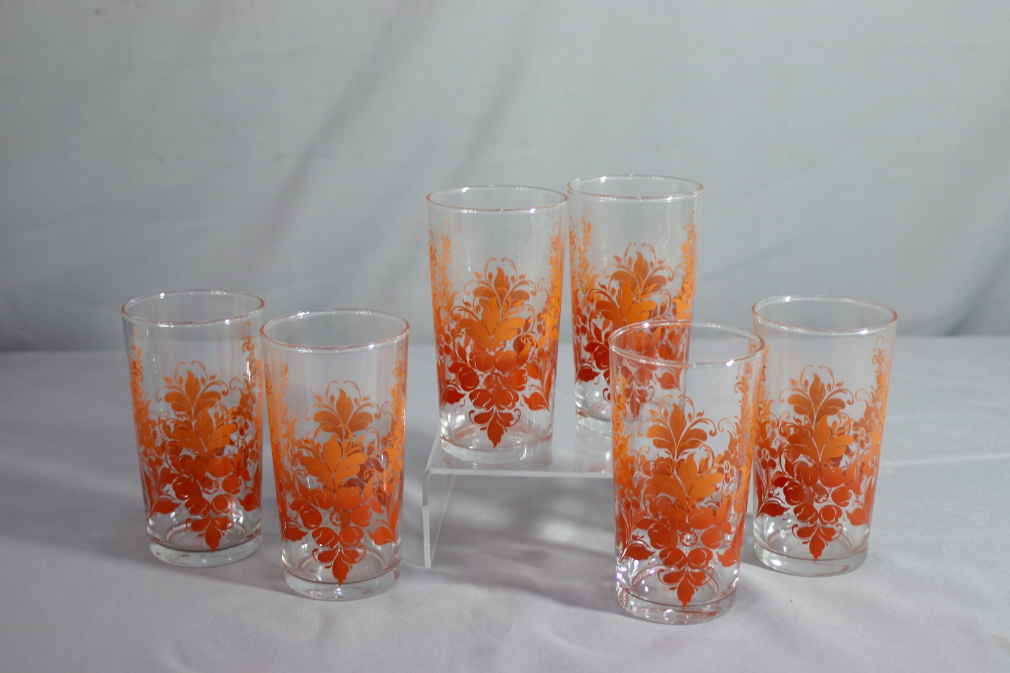 Set Of 6 Escort Orange Anchor Hocking 5" Glass