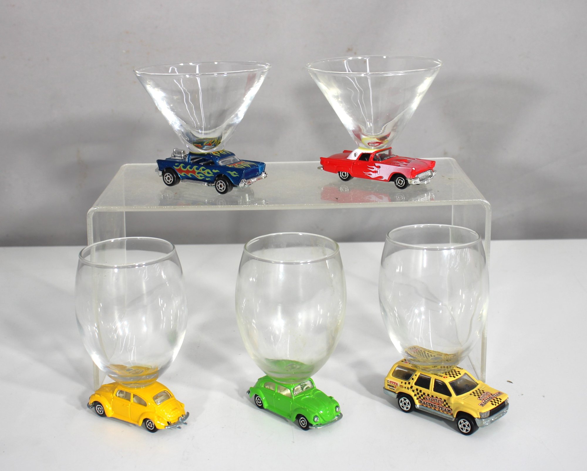 Bring some fun and retro flair to your glassware collection with this set of six one-of-a-kind novelty glasses, each creatively crafted using a classic toy car as the glass stem. Perfect for collectors, conversation starters, or quirky cocktail parties, this whimsical set combines childhood nostalgia with functional art.