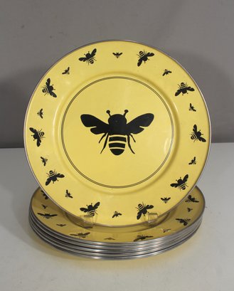 Add a buzz of charm to your table setting with this delightful set of 6 bee-themed dinner plates by Honeycomb Studio. Featuring a bold central bee graphic surrounded by smaller bees on a cheerful sunny yellow background, these plates are as functional as they are fun.