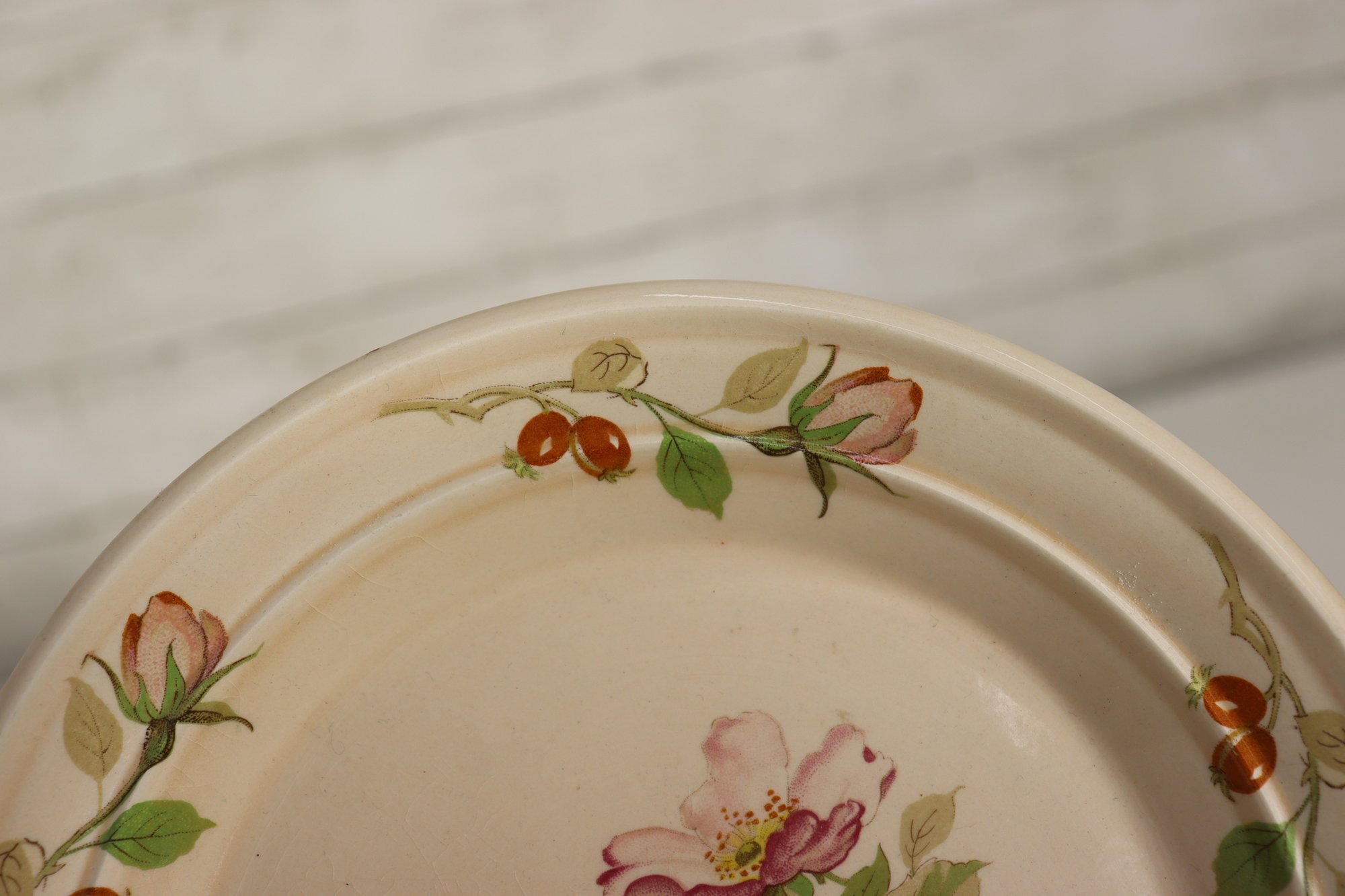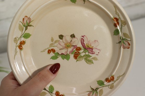 Lovely set of 6 vintage Portmeirion Pottery dessert / salad plates made in England. Each plate measures approx. 7” round and features a charming floral design with berries and blossoms in soft pastel colors on a cream background.